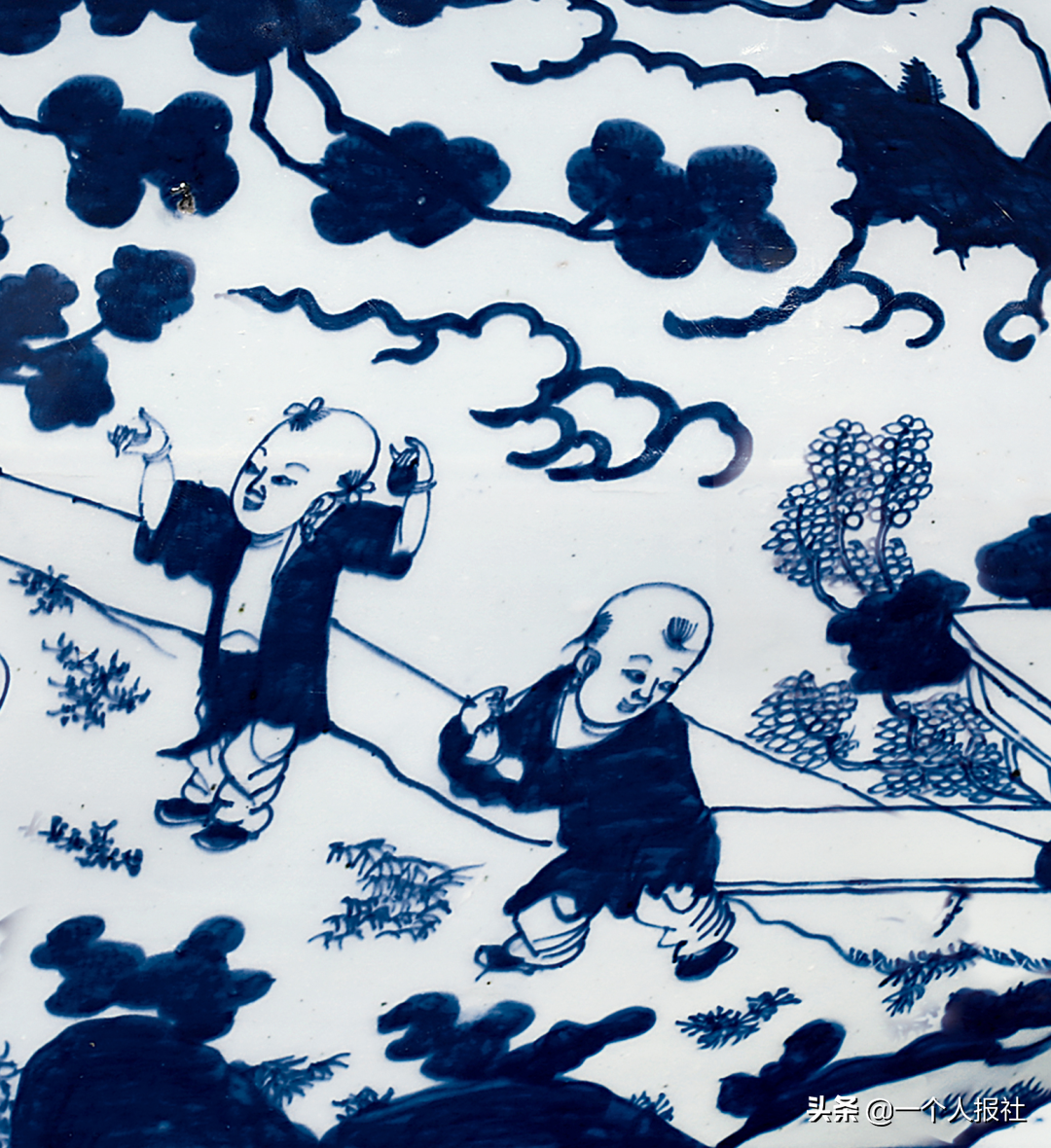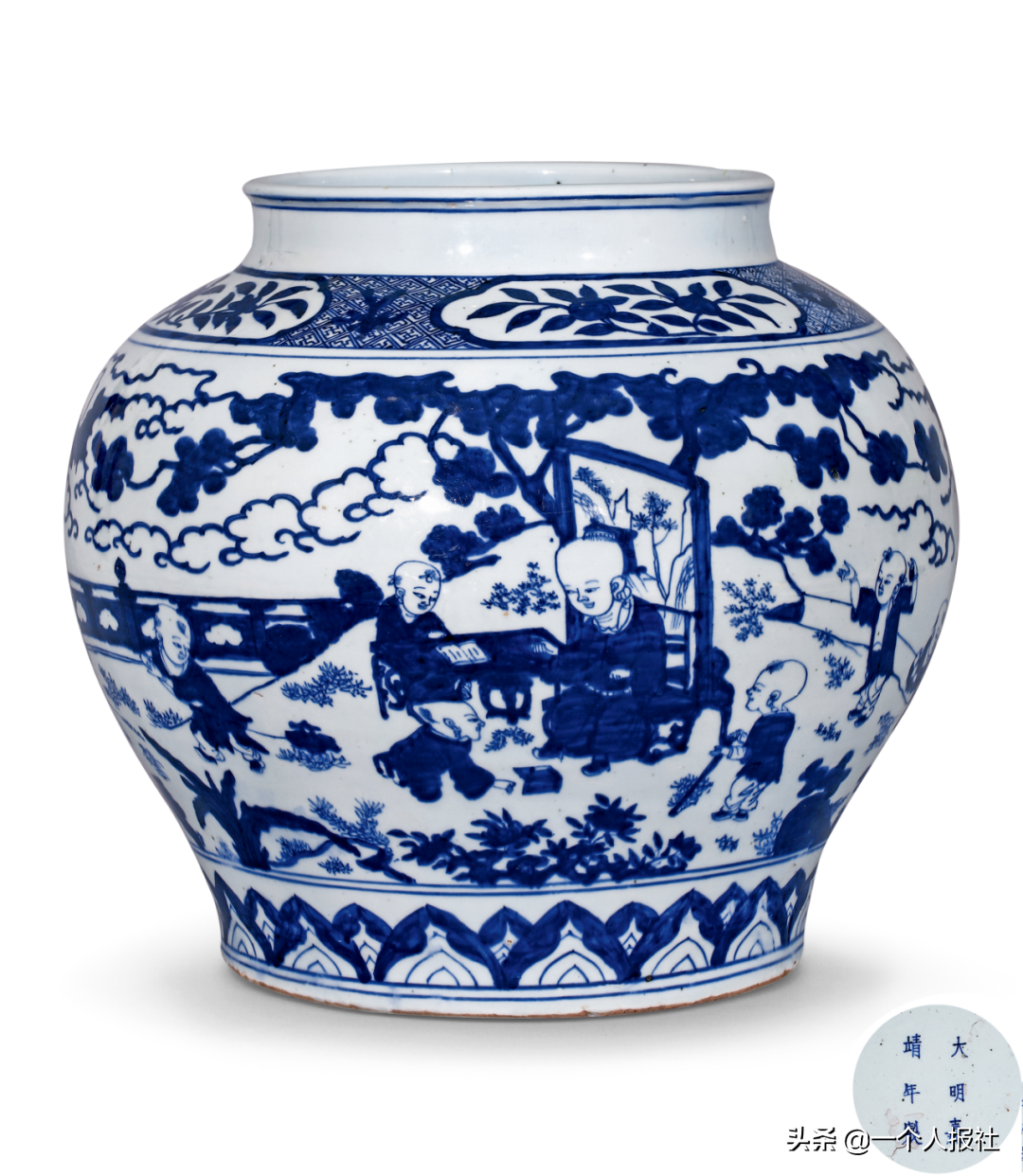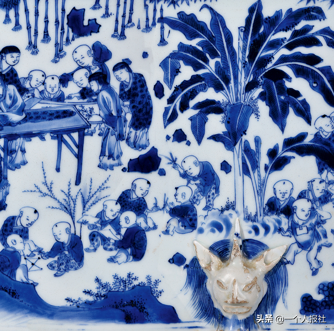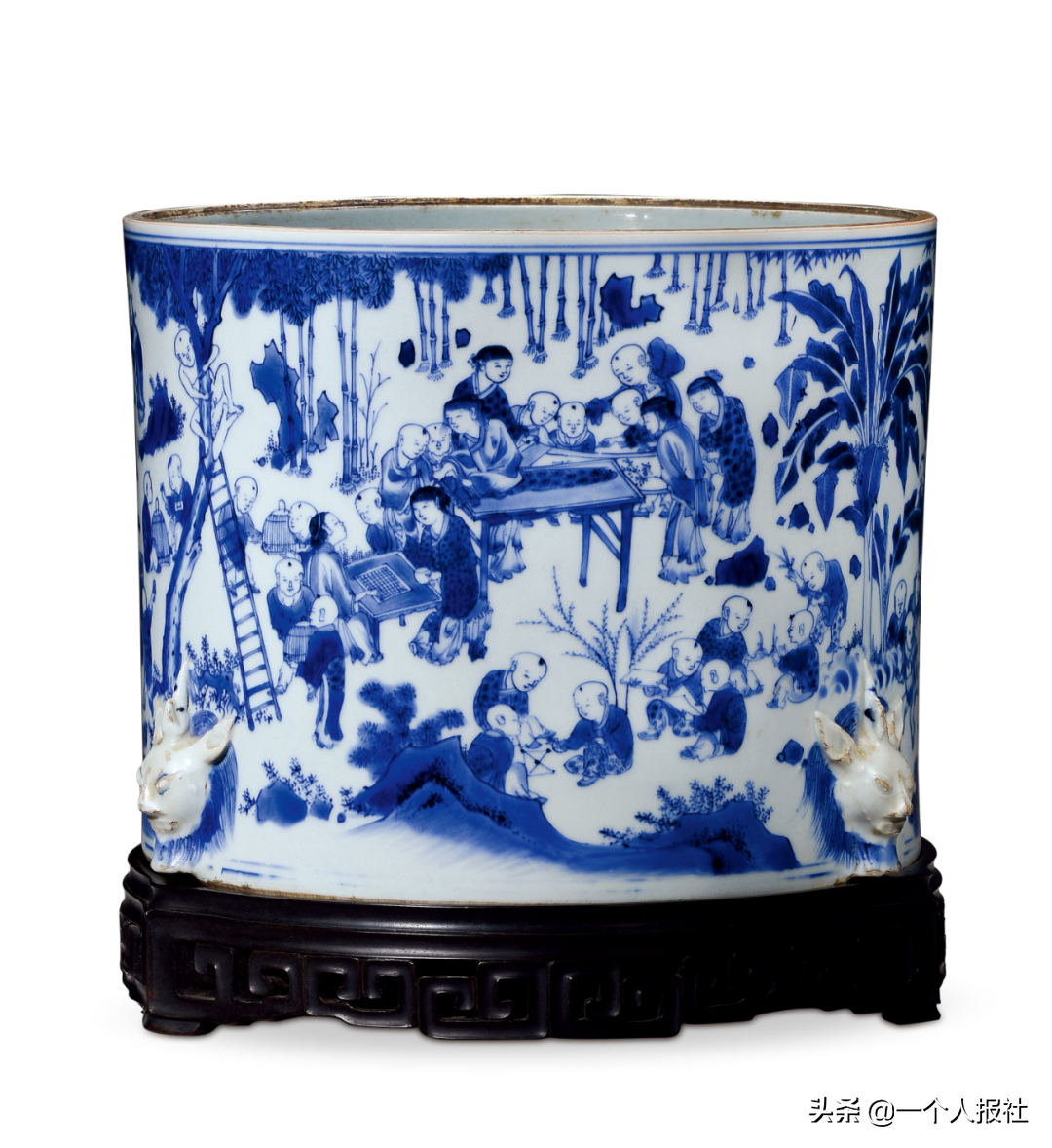 明崇祯青花百子图大笔海