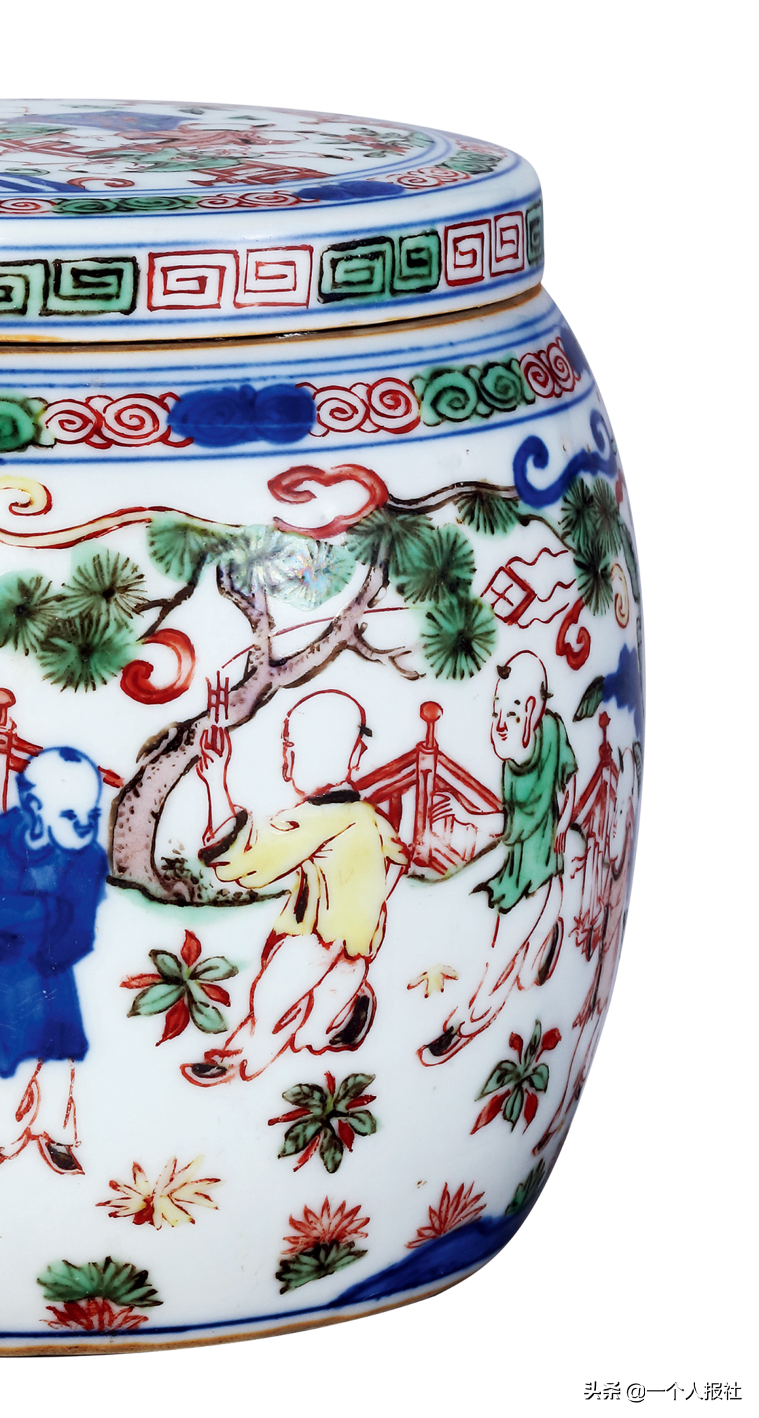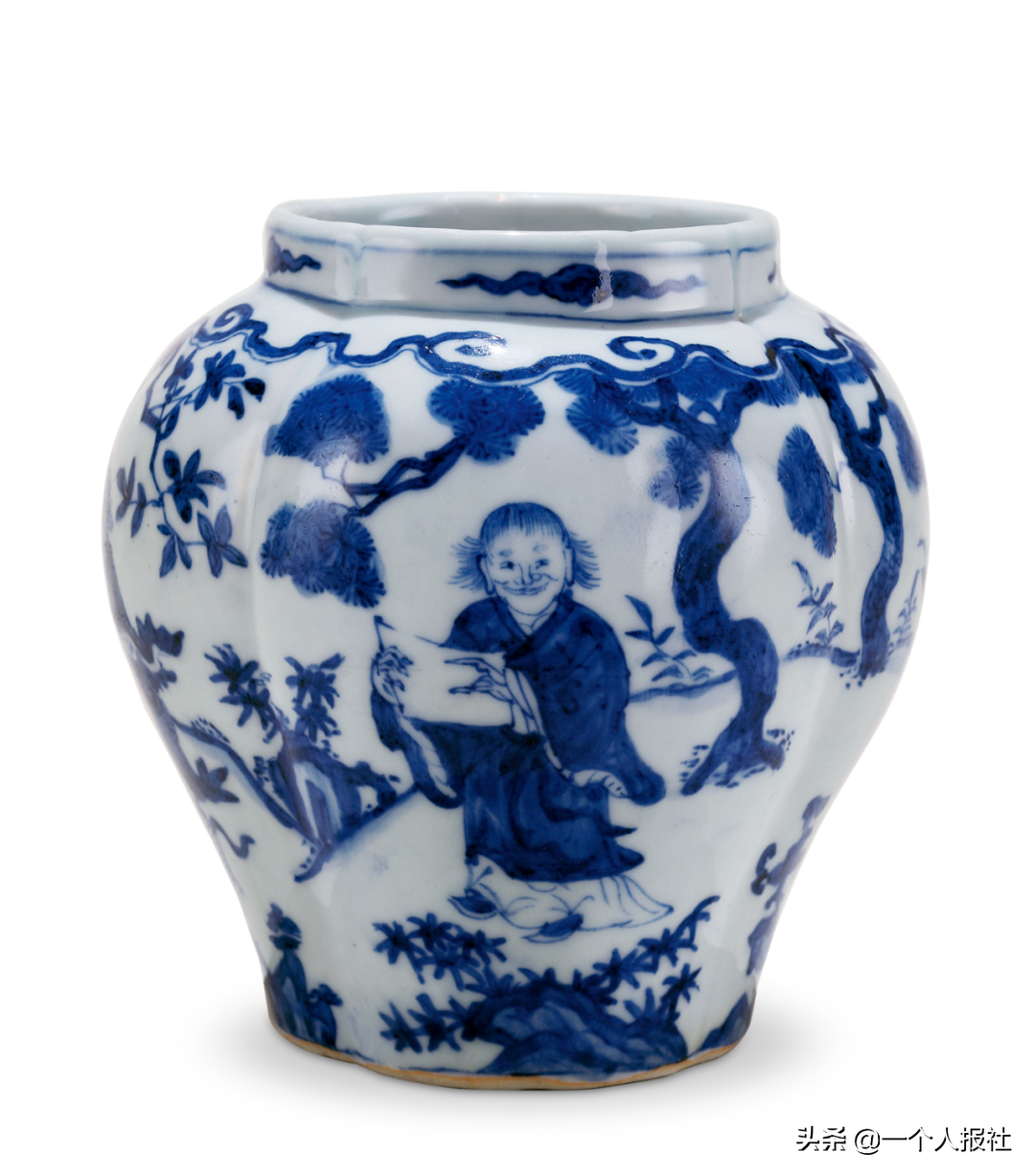 明万历青花五彩婴戏围棋罐
