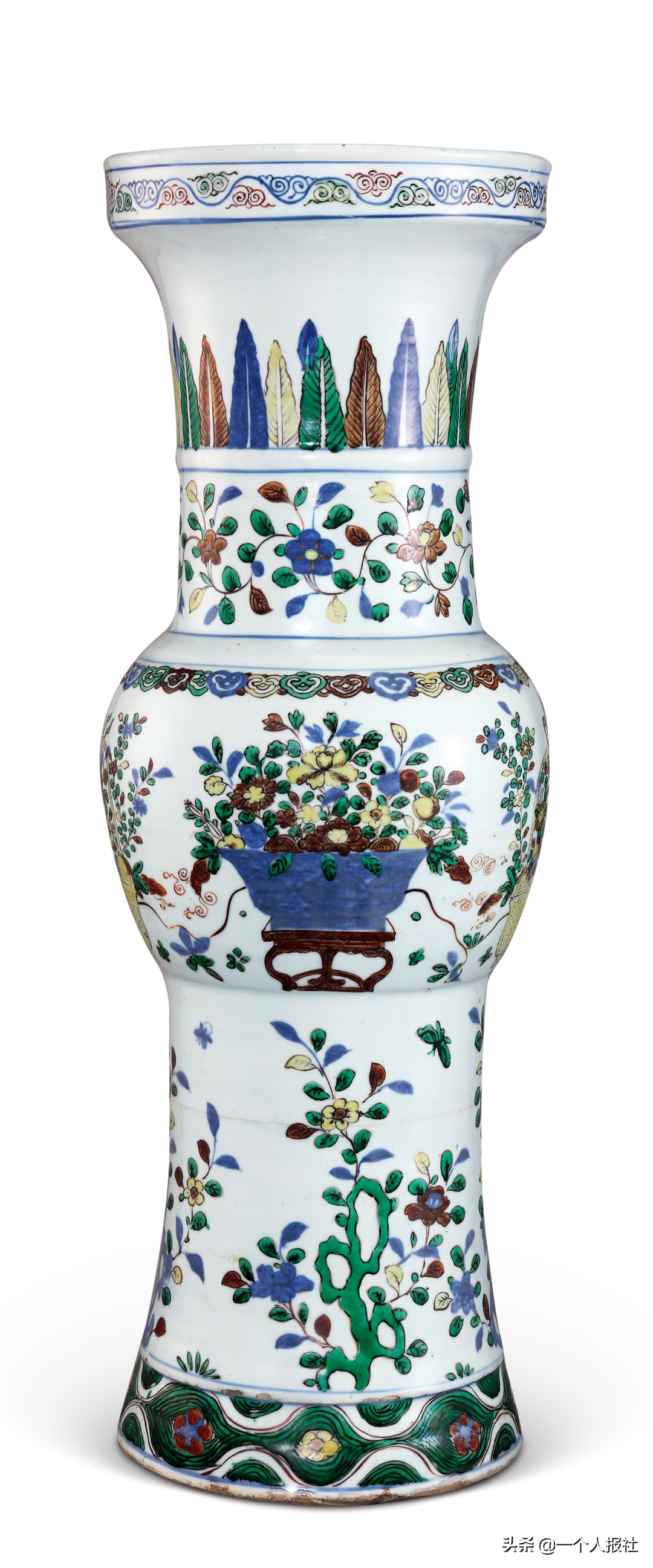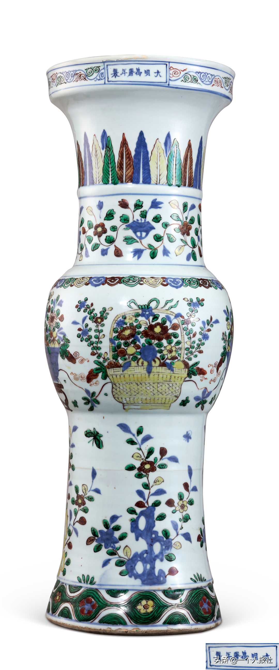 明万历青花五彩花卉大花觚