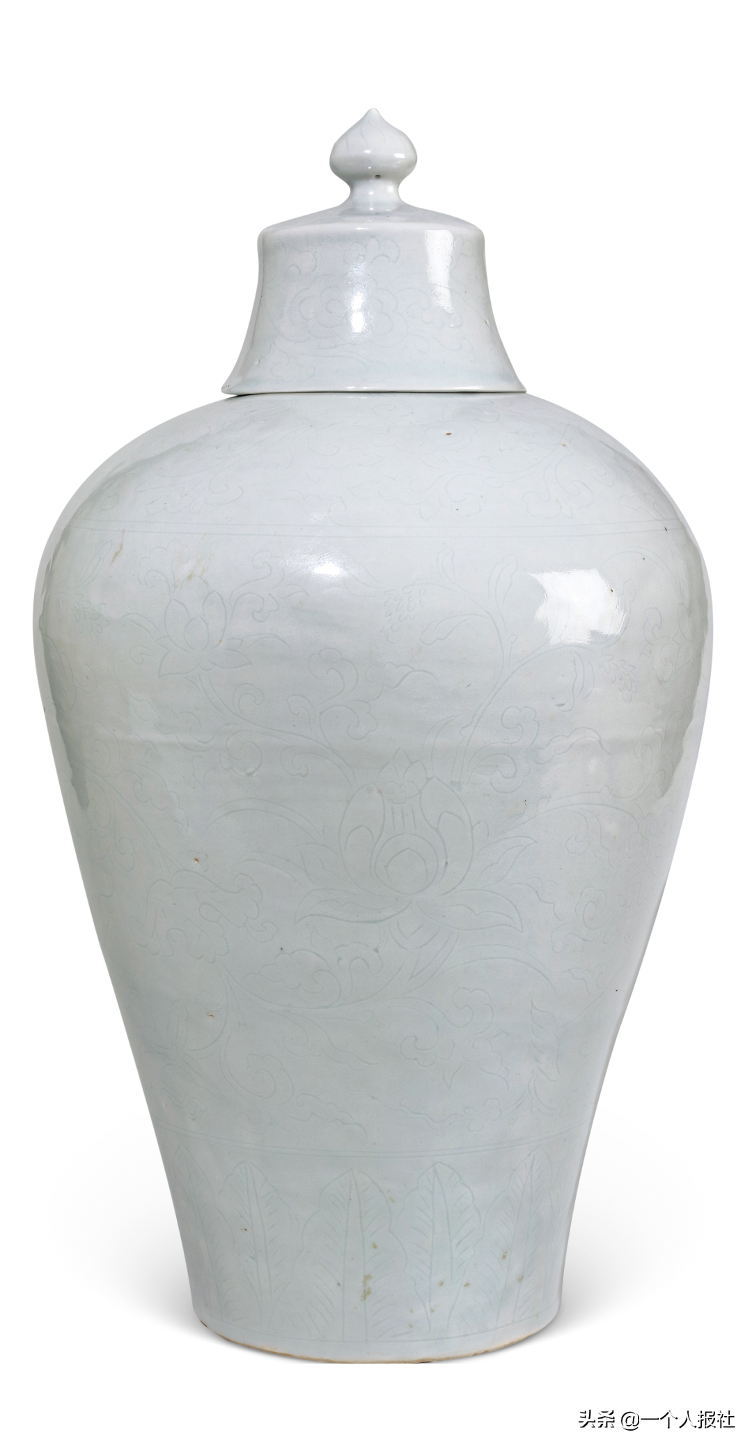 明永乐甜白釉暗刻缠枝莲纹带盖梅瓶