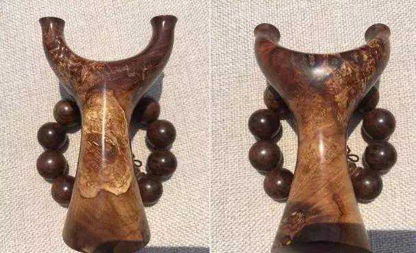 另外在网上看到,还有人专门购买年份比较小的麻梨疙瘩制作弹弓,由于本人并不是很喜欢玩这些小物件,所以对这些木质的把玩物件的价值还不是十分的了解,这里就不详细分析了。