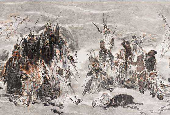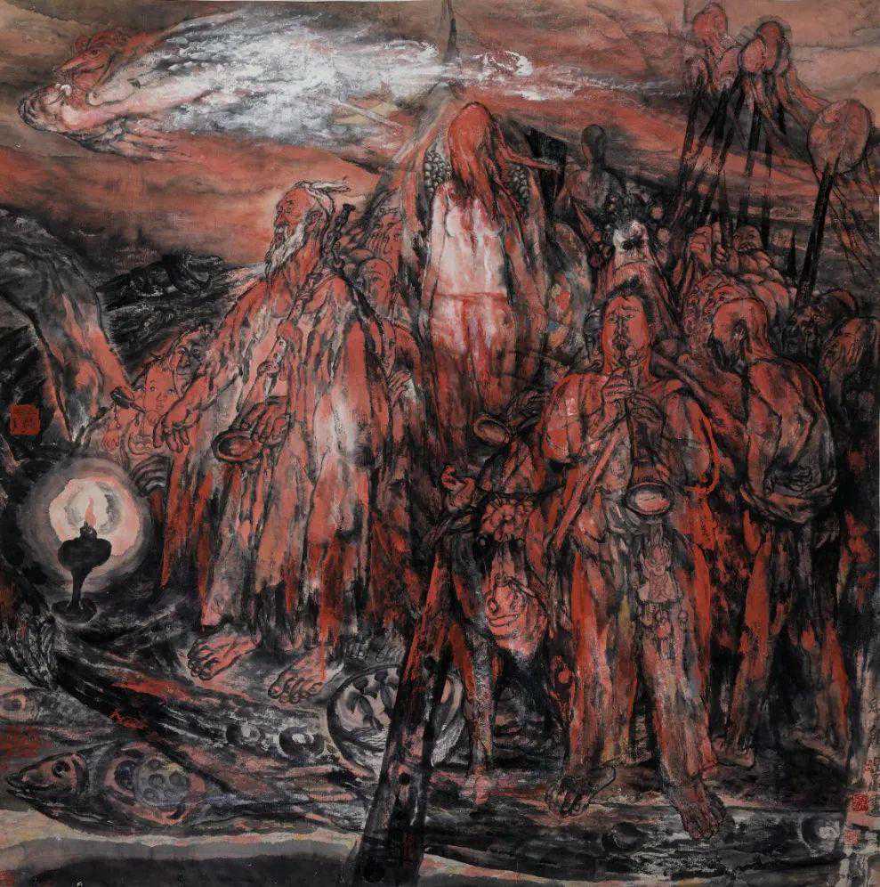 这三位水墨人物画家,不仅同是画院的专业画家,而且年龄接近,成长的时代一致,他们三人都曾以坚决的口吻说过:“我们不是文人画家,不要用文人画的标准来看我们的画,我们要同文人画拉开距离,越远越好。”三人合在一起做这个展览,还有一个意思,就是要挑明同传统文人画的区别,展现大量的不属于文人画范畴的东西,以此来表达他们的时代性和某种面向未来的态度。他们自信在水墨人物画的创造力和表现力上,不输古人,亦无需折腰于文人画。