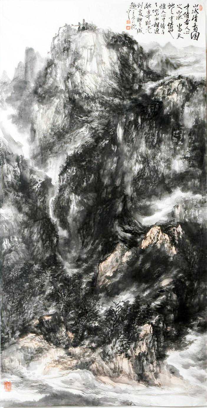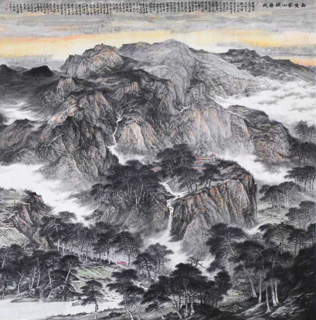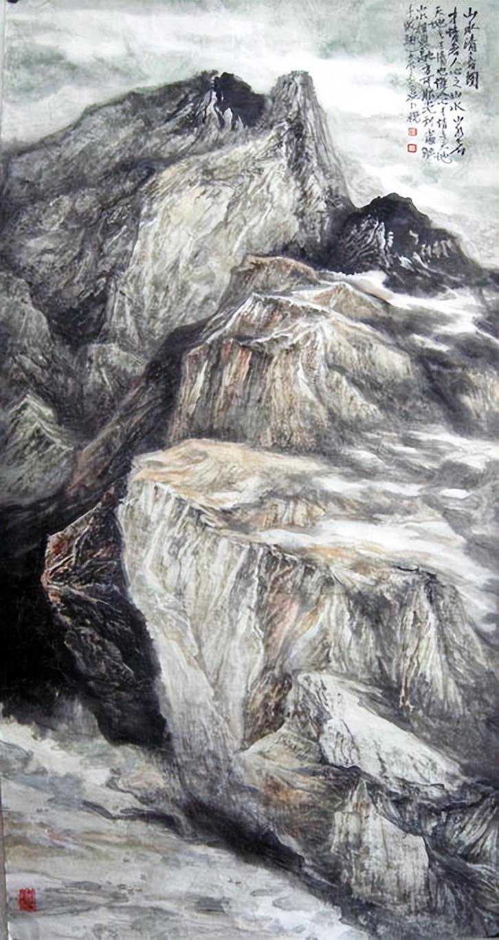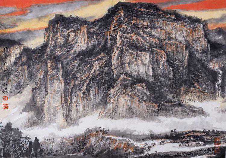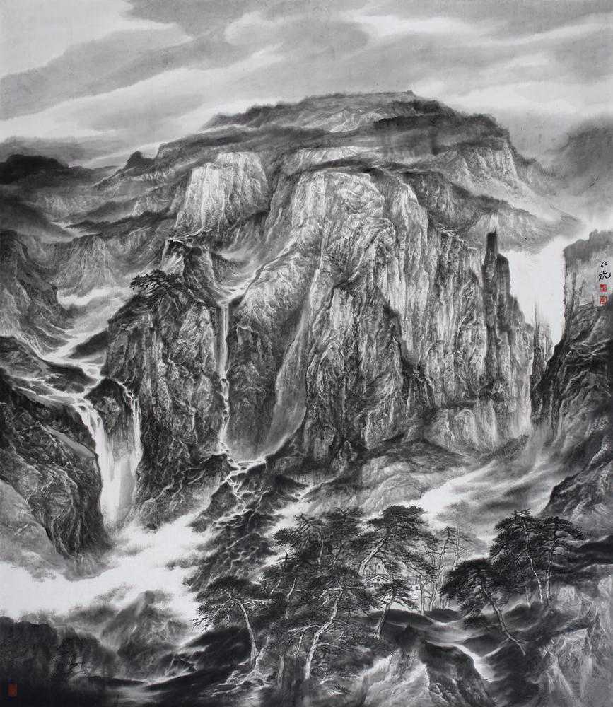 中国画,向以言志抒怀为特点,他的笔墨点线之间充满了人文精神与情怀,所以,在画面上呈现的不再是客观世界的“存在自然”,而是主观世界的“内心自然”,如此,中国画艺术形成了讴歌“人与自然”母题的永恒精神文本,并在精湛、独特与虚拟的空间结构中,“写意”着千古梦境、无限乡愁和灵魂象征。我看于仁祝的作品,却有如此感觉。于先生画山水,气势磅礴,意象表现,坦荡磊落,清峻苍茫,显现了画家的气质、秉性与品格,因为,只有在思接千载、视通万里的精神高度上,才能如此立象尽意、遥情寄物的自由胸怀,在有限中表现无限,并化实为虚,化形为神,以内美修能取胜,使笔端山水、花鸟升华为人格、精神象征,用以传达生命之音。