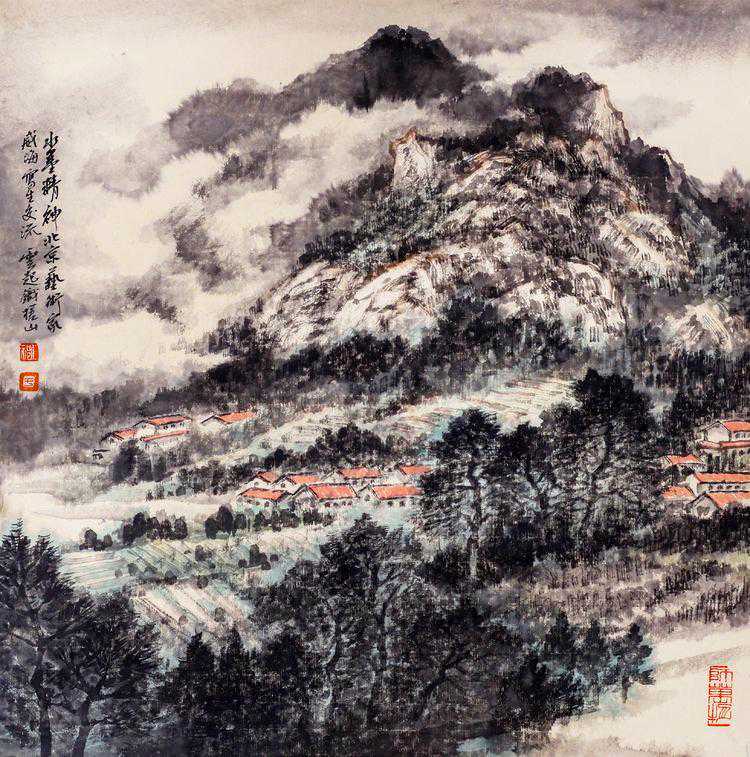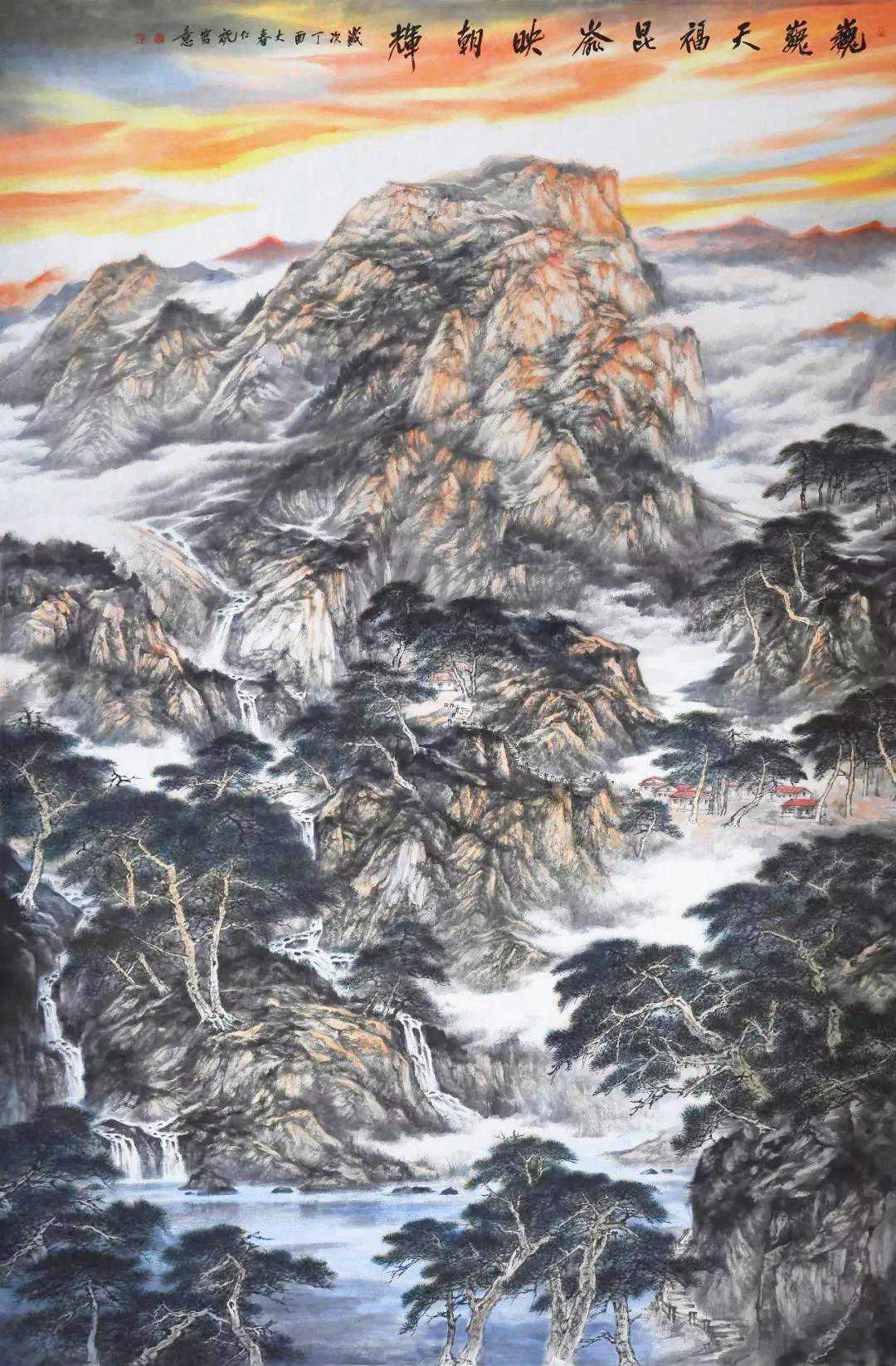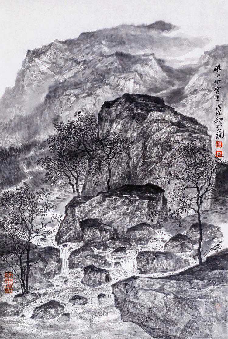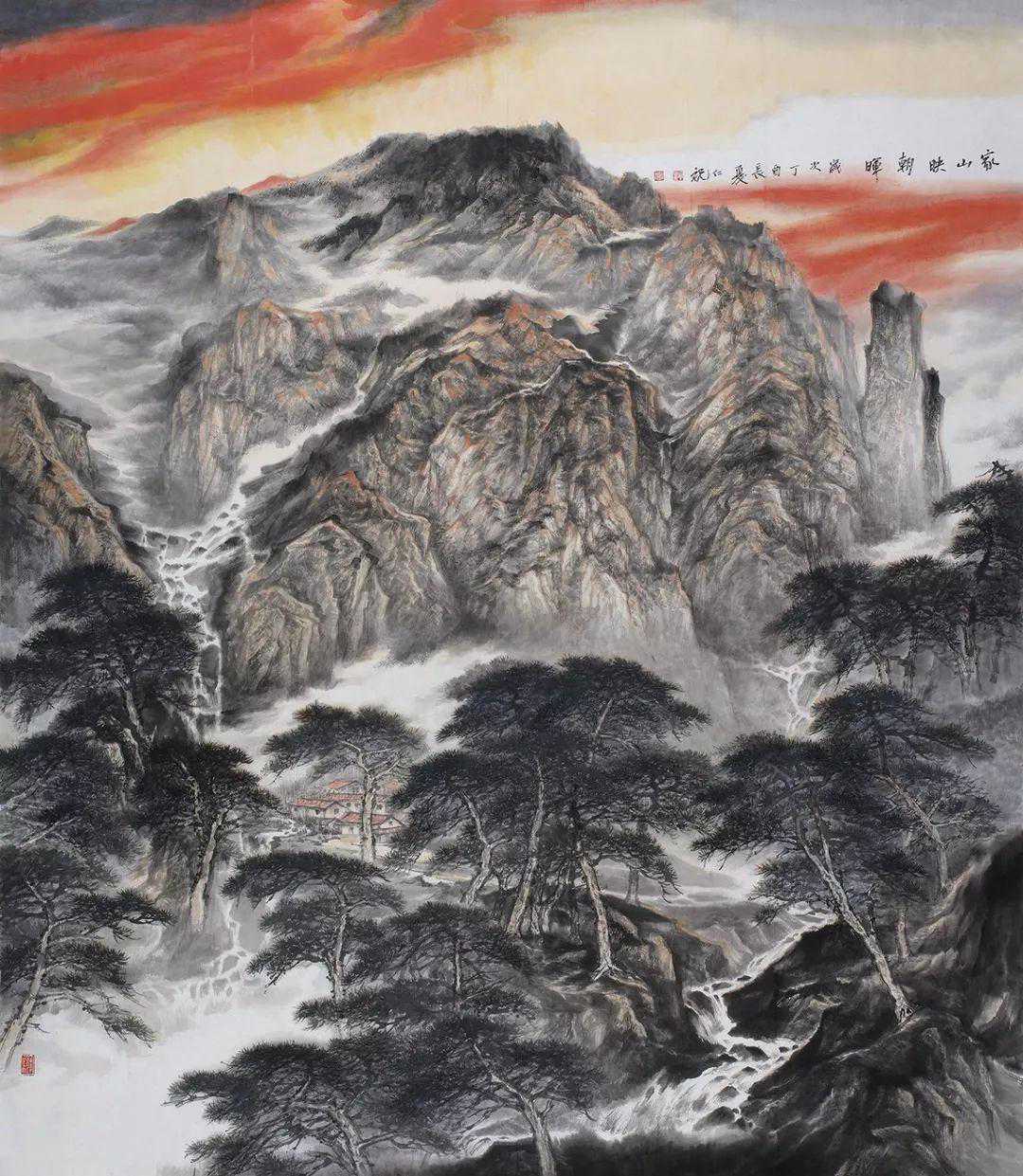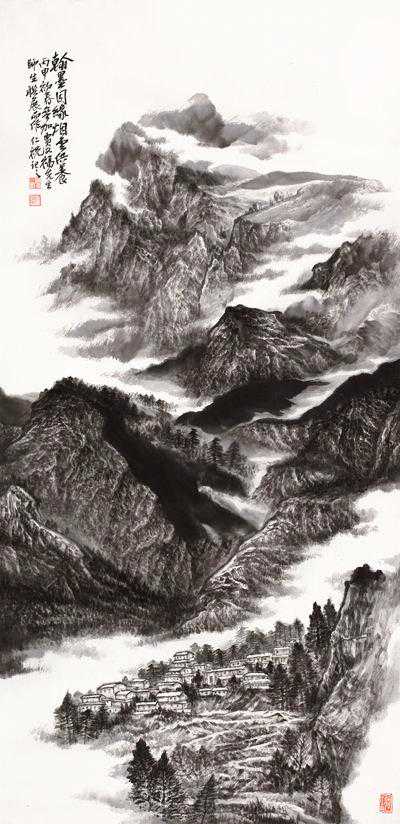 中国画,向以言志抒怀为特点,他的笔墨点线之间充满了人文精神与情怀,所以,在画面上呈现的不再是客观世界的“存在自然”,而是主观世界的“内心自然”,如此,中国画艺术形成了讴歌“人与自然”母题的永恒精神文本,并在精湛、独特与虚拟的空间结构中,“写意”着千古梦境、无限乡愁和灵魂象征。我看于仁祝的作品,却有如此感觉。于先生画山水,气势磅礴,意象表现,坦荡磊落,清峻苍茫,显现了画家的气质、秉性与品格,因为,只有在思接千载、视通万里的精神高度上,才能如此立象尽意、遥情寄物的自由胸怀,在有限中表现无限,并化实为虚,化形为神,以内美修能取胜,使笔端山水、花鸟升华为人格、精神象征,用以传达生命之音。