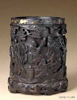 紫檀木镂雕会昌九老图笔筒