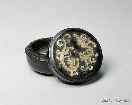 盒为乌木制,作莲蓬式,子母口,圈足。盒体光素,盖面镶嵌螺钿雕双螭纹,双螭作环绕状,神态生动,精细之处毛发毕现,线条柔美自然,画面耐人寻味。作品以螺钿配乌木,庄重简约,气派雍容。