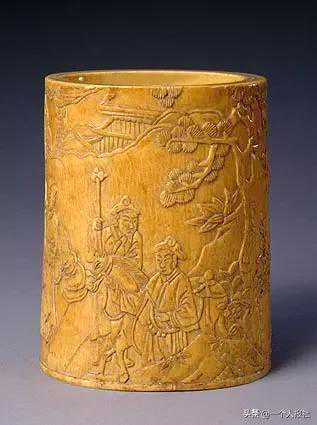 象牙山水人物图笔筒