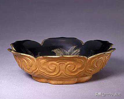 匏制勾云纹漆里花口盘