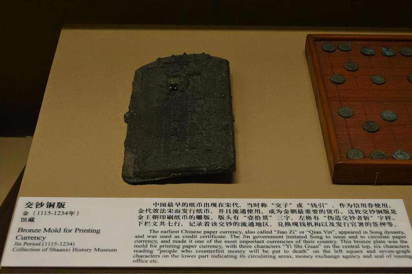 1965年出土于陕西省西安市,高21厘米,宽11厘米,厚1厘米,是金代印刷纸币的雕版。