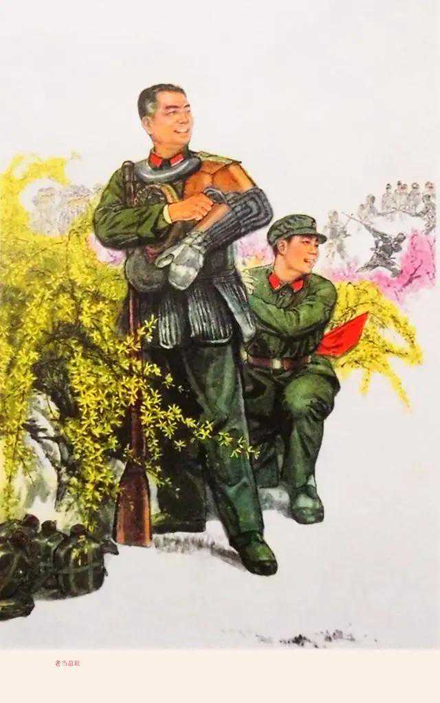 这幅年画作品,生动描绘了老将军到基层当兵练习劈刺的情景,表现了官兵一致、苦练过硬杀敌本领的革命优良传统,有效增强了部队的凝聚力和战斗力。
