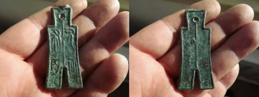 小布一百,通高35.3毫米,厚2.9毫米,重9.7克。可兑换五铢钱100枚。