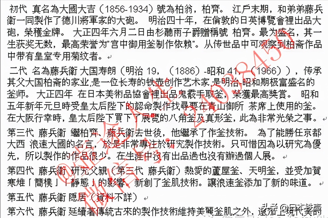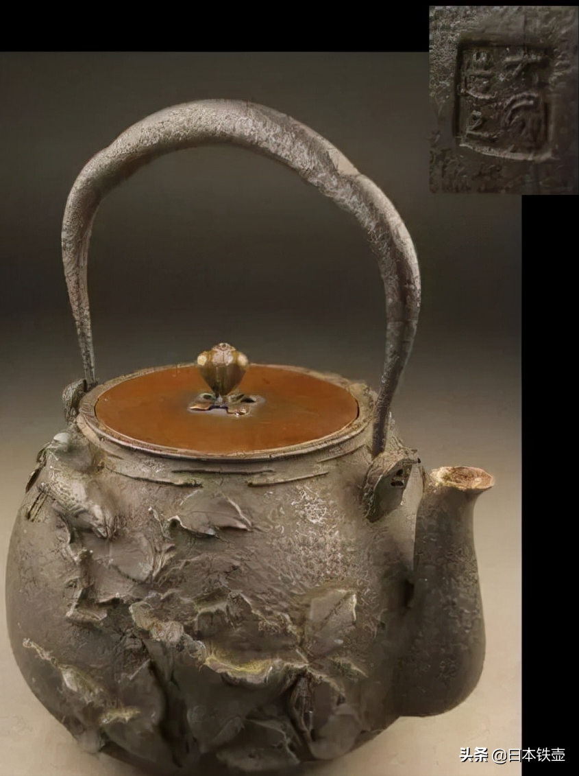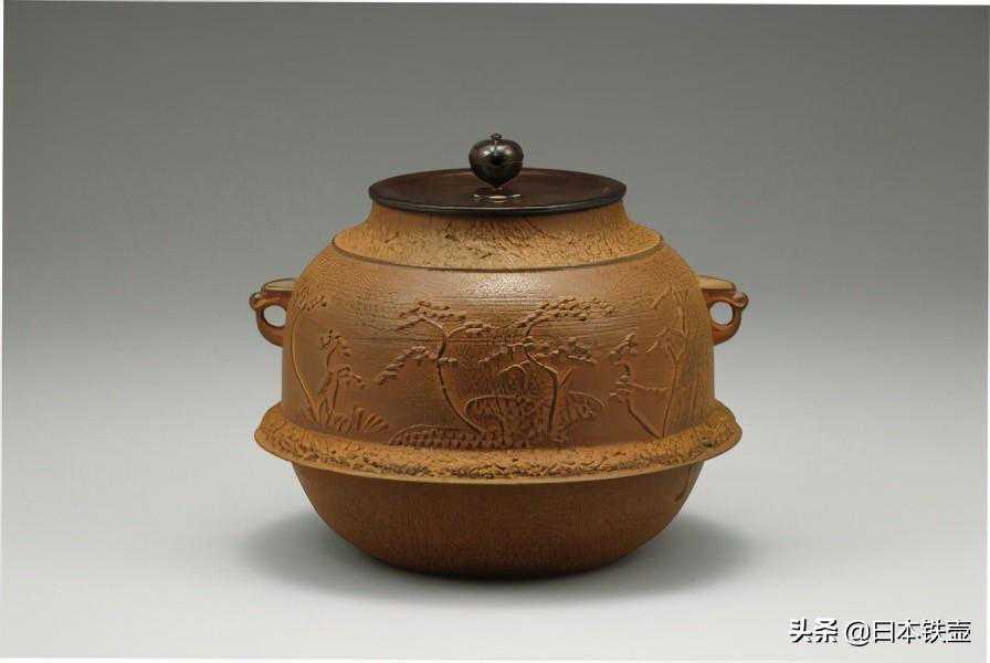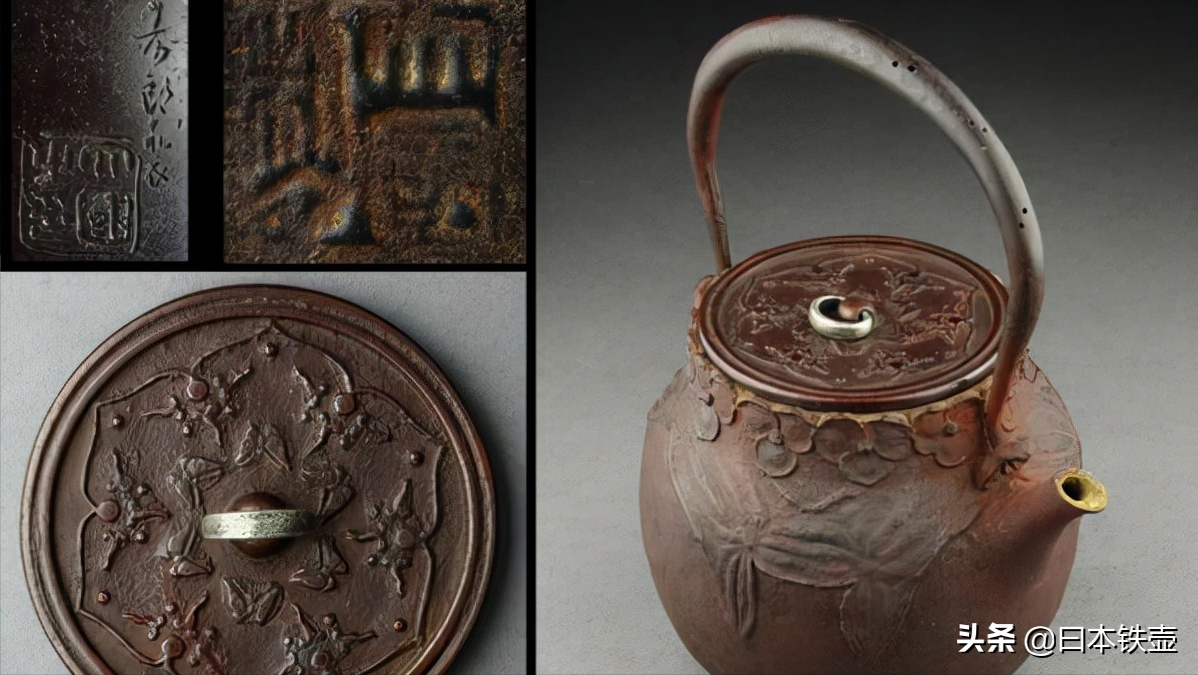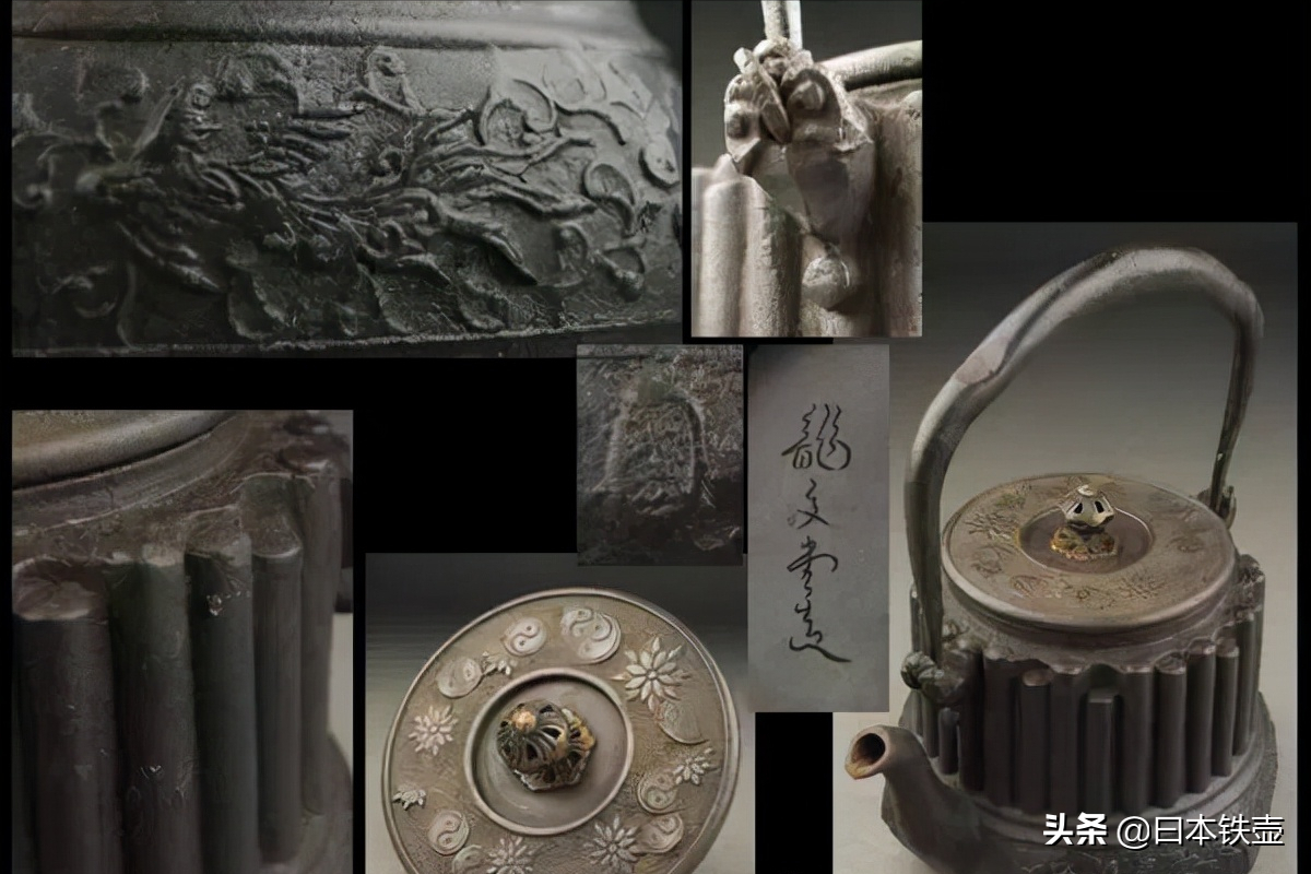 京都铁瓶第一家“龙文堂”在明治时期达到空前鼎盛,此期间吸纳许多优良铸物师为其麾下效力,较知名的有安之介、大国寿朗、上田照房、井上四大天王。大国寿朗的壶身多以诗文、花鸟为主,在砂模上精细刻划出反模成就的铸物工艺,目前工艺师已难以追越。