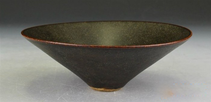 唐宋时期,江西地区一直是禅宗传播的重镇,吉州窑所属的吉州,是禅宗最活跃的区域之一,如《景德传灯录》中的如宝禅师,是居住在吉州资福禅院(也即是今江西省吉州市)。所以,吉州窑所产的黑釉瓷盏及其他民窑的瓷器,从器型、釉色及装饰风格上也受到了禅宗文化的极大影响。以江西吉安县永和镇为中心的吉州窑,自晚唐开始创烧,北宋时发展壮大,南宋时发展至鼎盛,元代以后逐渐削弱,前后烧窑时间达500年之久。因宋代社会生活中流行斗茶风俗,以及寺院僧人所办茶汤会,吉州窑顺应社会需求,烧制出适合人们斗茶,及僧人茶汤会的黑釉瓷盏。黑釉瓷又称“天目瓷”,是吉州窑最有名,最具代表性,也是产量最大、品种最丰富,装饰工艺最具地方特色的产品。吉州窑黑釉因含铁量比其他窑口产品低,而钛、钾、镁的含量相对要高,故烧成后,釉质肥厚莹润,黑色深沉柔和。通过独特的工艺技巧,在釉面上产生变化多端的效果和纹样,使黑釉瓷达到雅致新颖的效果。