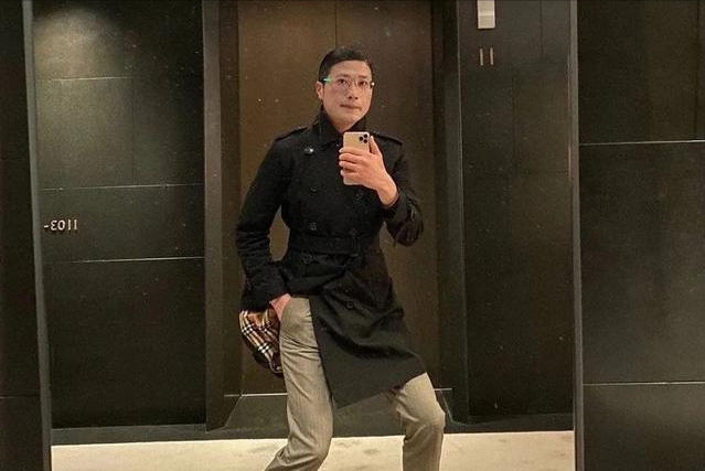 首先火的就是拍照的姿势,徐勤根在对镜自拍的时候,喜欢露出自己的名牌衣服标签,所以右手是插在裤子口袋里的,然后半蹲着撅着屁股,看上去非常不协调,但是又很滑稽。