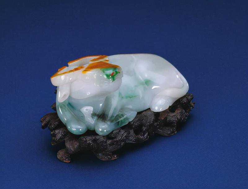 翠卧牛,清,高6.6cm,长15.1cm,宽7.7cm。