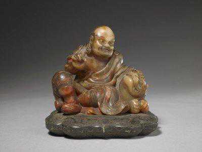 寿山石伏虎罗汉,清,周尚均雕刻,通高12cm,长12cm,宽10cm。清宫旧藏。