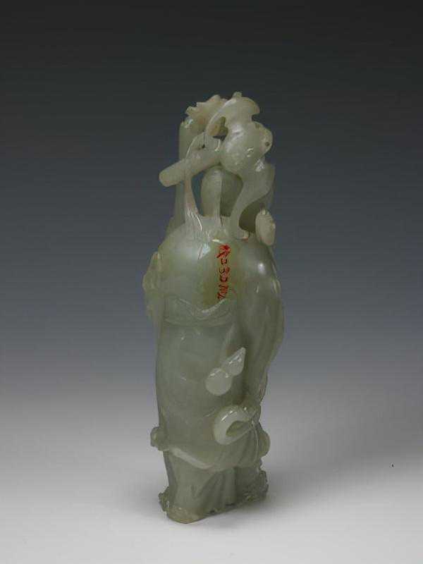 青玉罗汉,清,高23.7cm,宽14cm,厚5.5cm。