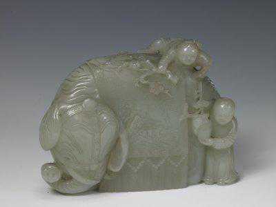 青玉双猴,清,长12.9cm,宽11cm,高10.2cm。