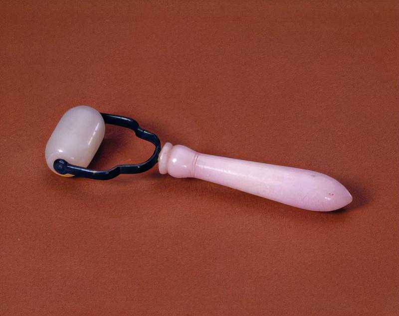 清代将中间穿孔的圆柱形、方柱形或三棱柱形小玉器称勒子、勒或玏,多用作佩饰或坠饰。