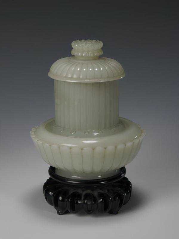 这是曾支持阿睦尔撒纳叛清的小和卓霍集占在支持阿睦尔撒纳叛乱失败后,遣使贡进的第一件痕都斯坦玉器。这也就是清代具有阿拉伯艺术风格的玉器首次进入内廷。平息回部大小和卓木的叛乱,扫清了和阗玉进入中原的障碍,大量新疆玉开始进入宫廷,这为皇家玉器工艺的发展提供了材料基础。乾隆帝喜欢痕玉玉器,在宫内设置有专门的痕玉作坊。