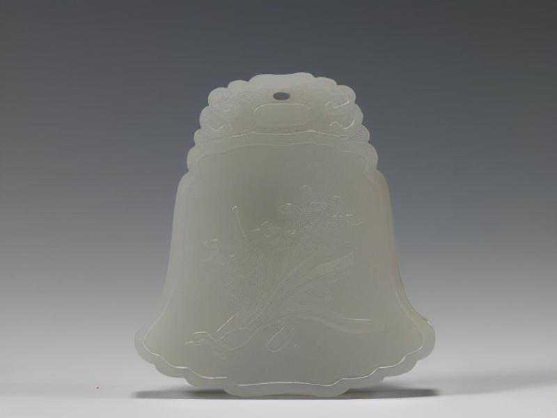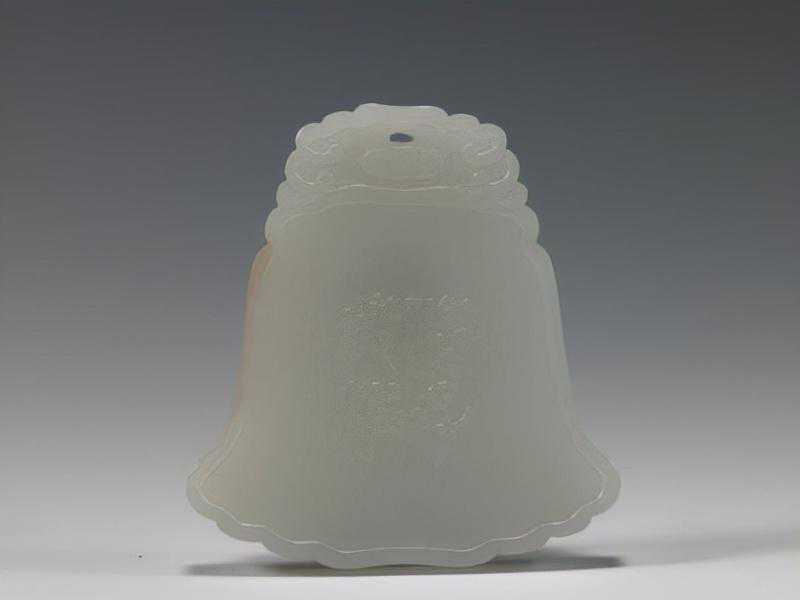 白玉十二月令组佩,清,璧径11.3cm,钟形长6.4cm,宽5.5cm,厚0.6cm。