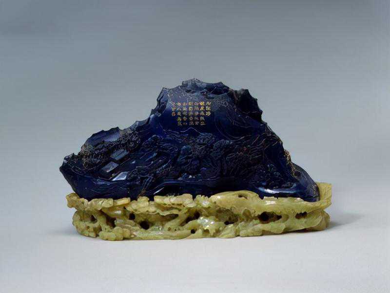青金石御制诗山子,清,高14.7cm,长30.3cm。