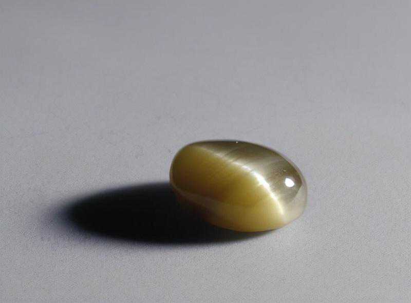 猫睛石,清,高0.69cm,长1.44cm,宽1.06cm。重11.77克拉。