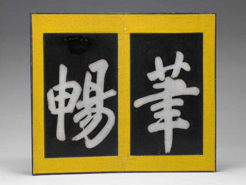 两树间留白处镌刻直行行书“羲之爱鹅”四字点题。图、纹均浅浮雕。