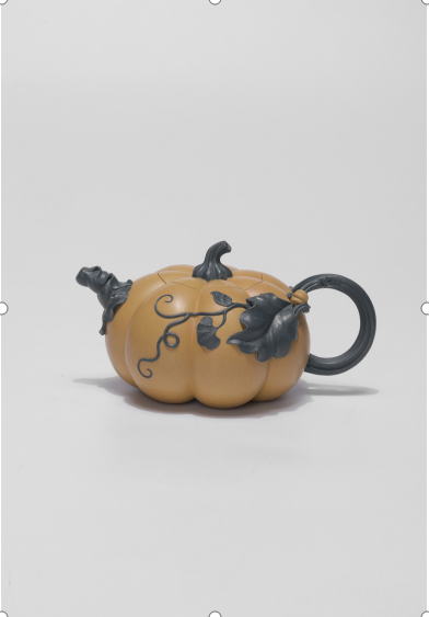 简介:此壶取料黄金段泥,泥料纯正稀少,形体为仿生南瓜,形象逼真,栩栩如生。观之犹若瓜熟即将待落,感受丰收的喜悦。壶嘴则以南瓜的叶包裹而成,壶把是用瓜藤在上面又迁出了瓜叶和小南瓜,瓜蒂为钮,嘴、把、钮用民国绿泥料来用更加突出真的感觉。壶身用瓜棱纹路饱满,弧线优美,和谐自然。