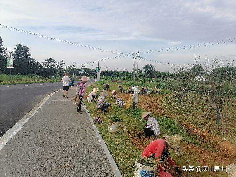 路边除草的村民,出于好奇我问她们,现在开发得这么好,你们有没有获得什么利益,她们告诉我,现在路比以前好多了,出行也方便了许多,还有环境有好了,住在这也更舒服了。我又问:多少钱工作一天,开始她们有忌讳不告诉我,我多和她们闲聊了聊,最后还是告诉我90块一天,我觉得少了,她们说反正是农闲季节,能赚钱就不错了,再说还能照顾家里。