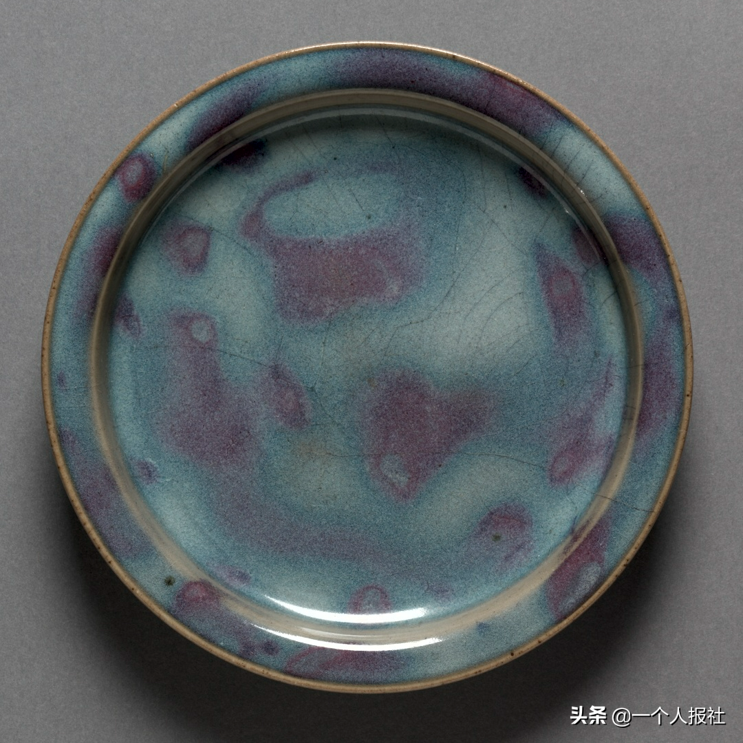 金钧窑蓝釉红斑折沿盘