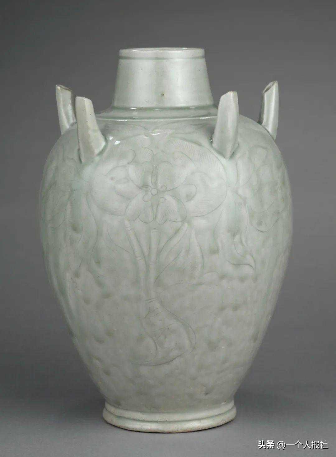 北宋定窑白釉刻花罐