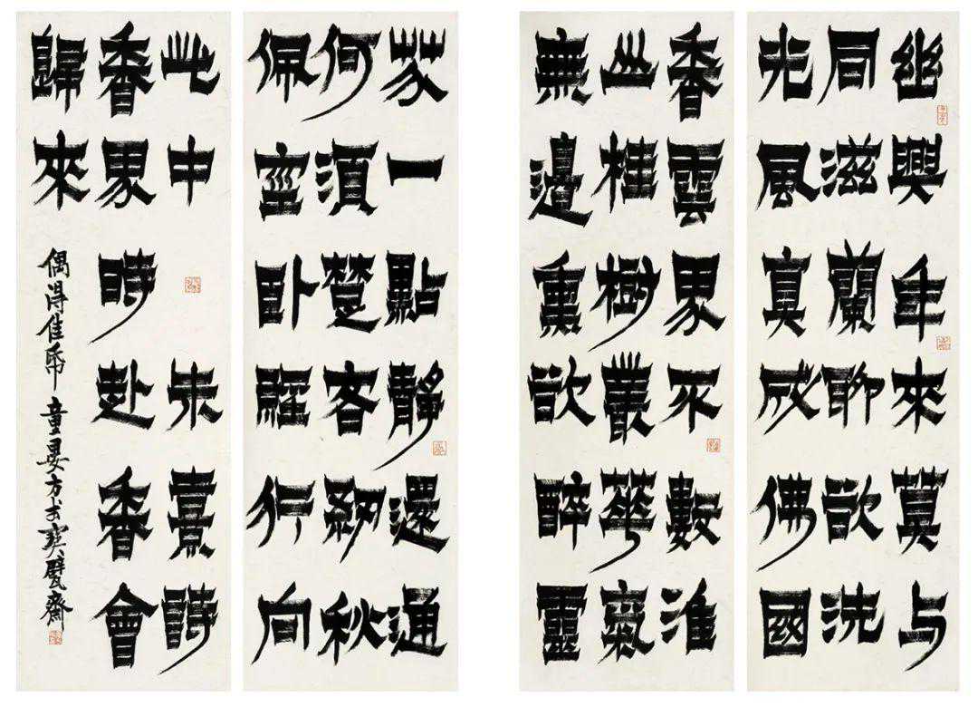 童衍方朱熹诗《香界》漆书四条屏横44cm,纵138cm×42023年