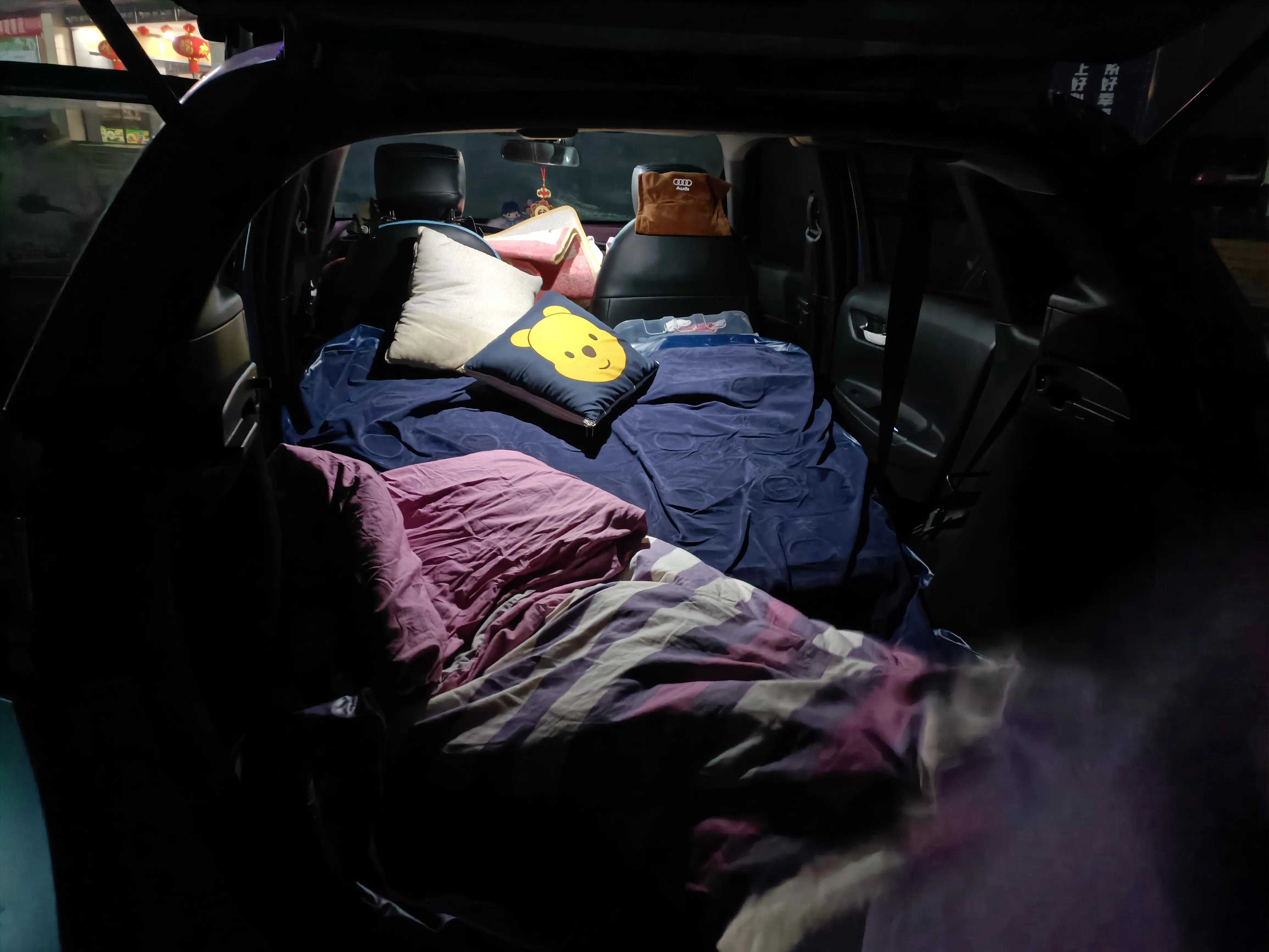 本次我们的座驾是一台1.5排量的飞度(速跑),行李箱,气垫,被子一条,嘎斯炉一个,方便面4包,火腿肠若干,咸菜一小盒,爸爸烙饼10张(没吃完)。