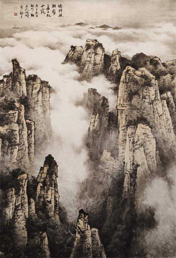 汝旺君,乃温文尔雅、文质彬彬的一介书生,周身都透着一股书卷气。每每聊起艺术创作,便滔滔不绝。观其山水作品,气势磅礴,极具视觉冲击力。他以新的审美图式创作大山大水,使自然之美幻化为颇具神奇魅力的艺术之美。