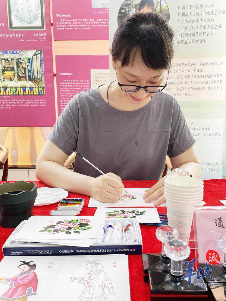 在穗水巴19船上,市民可以在通草画绘画体验区尝试创作,体验用通草纸绘画与普通纸张绘画的区别。