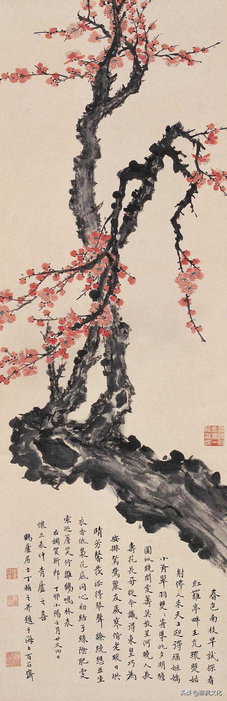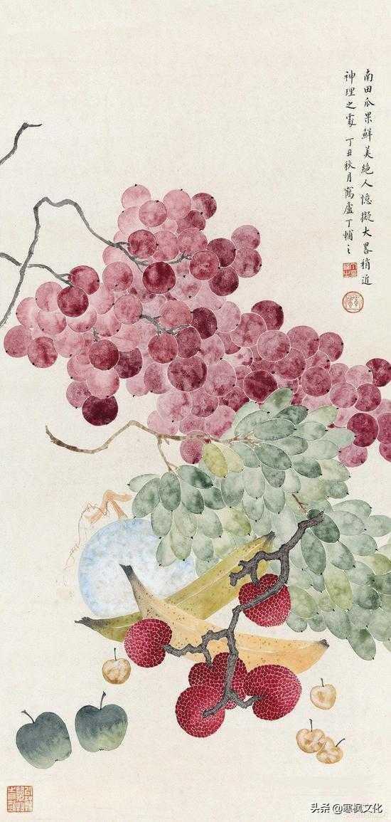 丁仁46岁开始学画,其性极高,无师自通,自学成才。其擅画古松、花卉和果蔬,古松蓬勃大气、苍郁朴茂,梅花笔意工致、韵味清雅,果蔬晶莹剔透、栩栩如生。