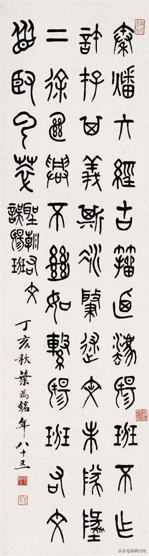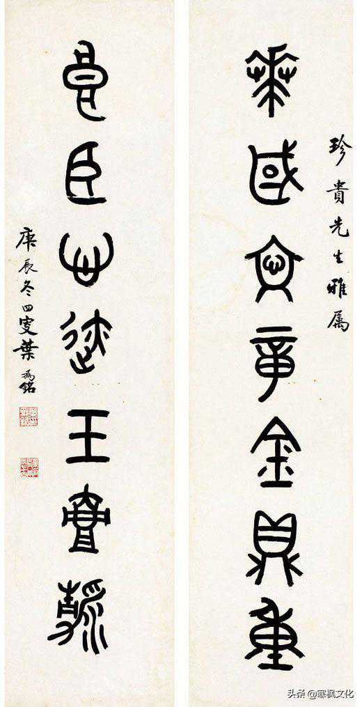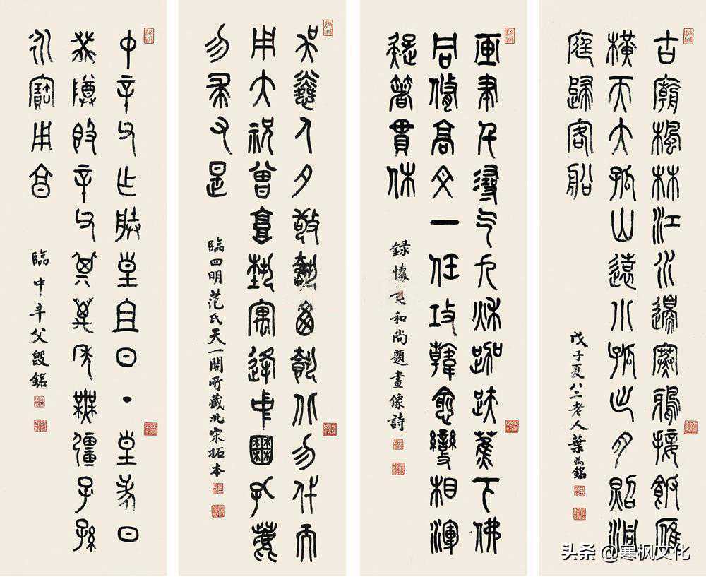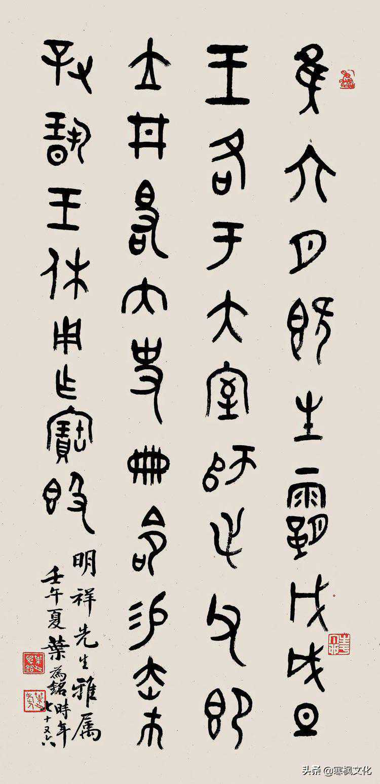 四、叶铭叶铭(1867—1948),又名为铭,字品三、盘新,号叶舟,徽州新安人,寄籍浙江杭州,近代篆刻家、书法家。叶铭擅金石书画,精金石考据,善篆隶,篆书结体谨严、淳雅古朴、用笔凝炼,隶书朴茂厚重、秀润遒劲。