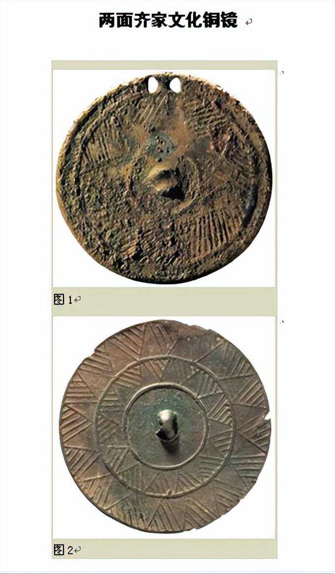 其实在妇好墓的铜镜尚未出土时,1975年在甘肃省广河县齐家坪墓葬出土的铜镜告诉我们,在齐家文化时就已经有铜镜了,接著1976年青海贵南的齐家文化墓葬中也有铜镜出土。目前齐家文化的铜镜,把我国铸造铜镜的历史向前推进了一大步。。。