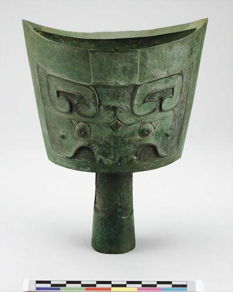 形状如铲子,柄部有一椭圆形銎,銎孔端饰一器面,中间饰蝉,与铲端交接处饰一兽面。