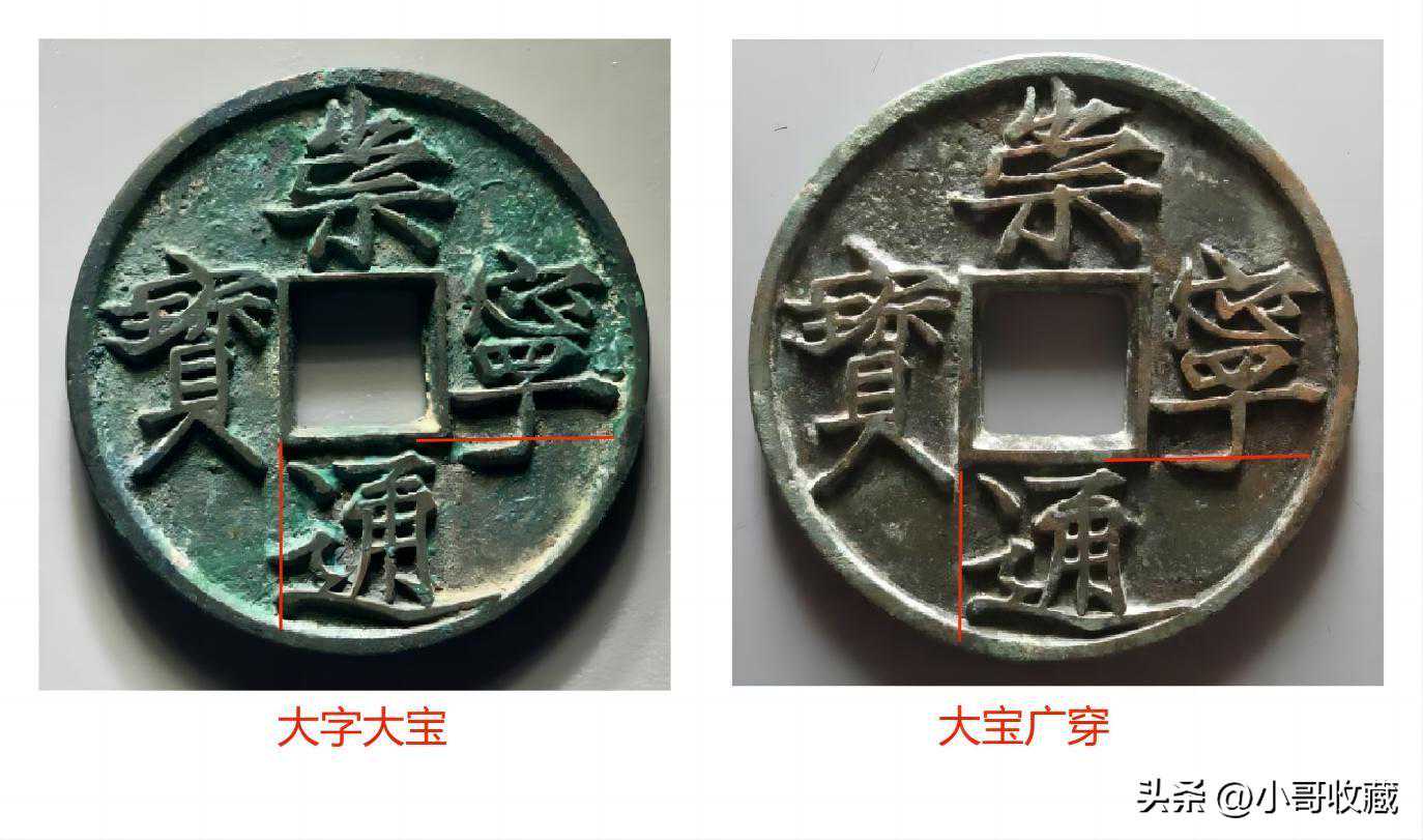 崇宁通宝大字大宝是我们比较最常见的版别,在《北宋铜钱》中是六级,跟它相似的版别还有两个,大宝广穿和大宝纤字,在在《北宋铜钱》中分别是四级和二级,好品的大宝广穿价格在1万上下。今天介绍这几个版别的区别,给刚入坑的泉友做参考,别被别人捡了漏。