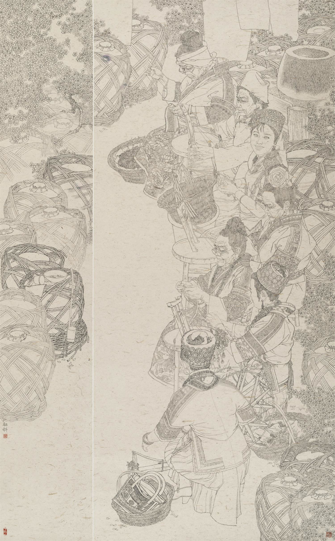 笔黑当随时代,时代在变化,生活环境在变化,人们的精神面貌也发生了变化。画家们以更开阔的视野、更清晰的思路、更精湛的手法,深人生活、扎根人民,用作品反映时代、讴歌人民。“新面貌”“新突破”是大多数人对展览的整体印象。中国工笔画学会会长陈孟昕欣喜地看到,展览中出现了很多新面貌,语言探索上更加多元,引入很多新观念,展览中的工笔画打破了传统的技法局限,有很多突破,在继承传统的国画基础上,比如我们看到有些作品将油画、版画、雕塑、剪纸、戏曲、舞蹈等艺术形式融入其中,以新的方式和新角度来诠释国画,为中国画提供了很多未来发展的可能性。福建省美术家协会副主席林涛观展后告诉记者,明显看到大家对艺术创作态度更加认真、更加投入,尤其工笔画创作更加丰富,出现了很多新面孔。展览打破了福建省美术家协会副主席、福建省美协山水画艺委会主任梁明对展览的一些固有看法,“不再是千人一面,整个展览呈现的面貌非常新。无论知名画家还是青年画家,每个作者都有自己的思想,在笔墨语言也在尝试新的探索和追求,大家在继承传统的基础上,结合了很多当代的构成意识”。