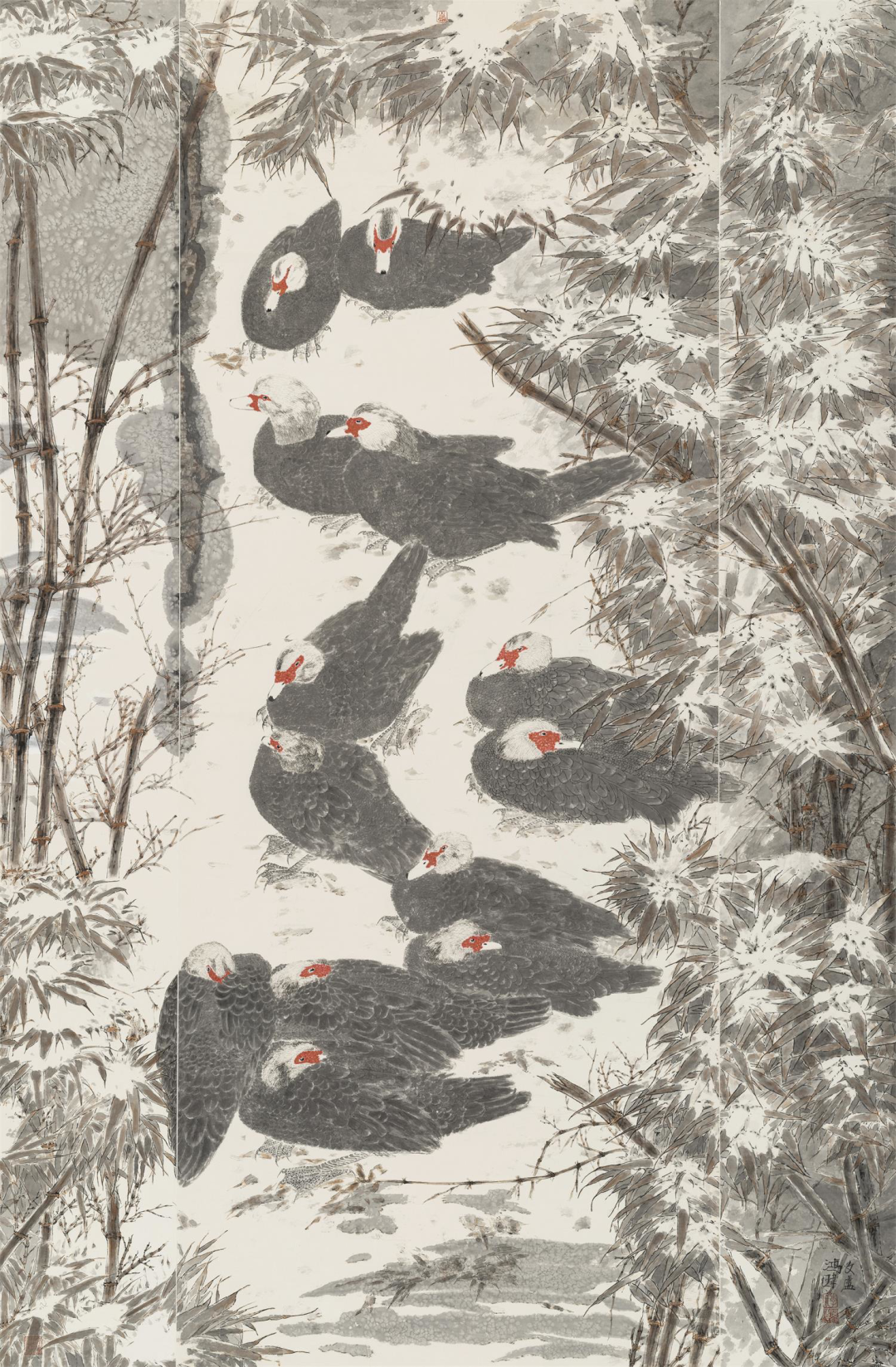 邓海林竹林集禽图240cm×200cm广东