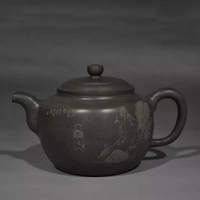 容量:180cc,原矿底槽青,也有不带刻绘的。底糟青名泥,产于江苏宜兴黄龙山系,紫泥原矿大致可分:头糟青、二糟青、底糟青等三类,本名泥产于紫泥最底层,质量之佳,为历代陶人推崇之首,亦为数百年来经典名器,及已故顾景舟大师最锺爱之名泥;此泥矿名称,因宜兴产地方言沿用已久,为恐溷淆,故用其音直译文字,以"底糟青"名之。