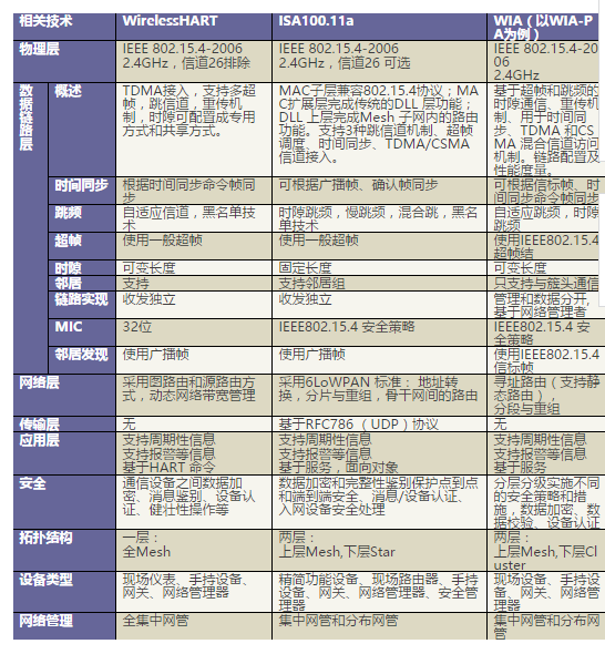 目前,WirelessHART、和WIA这三大国际工业无线标准各具优势和特色。