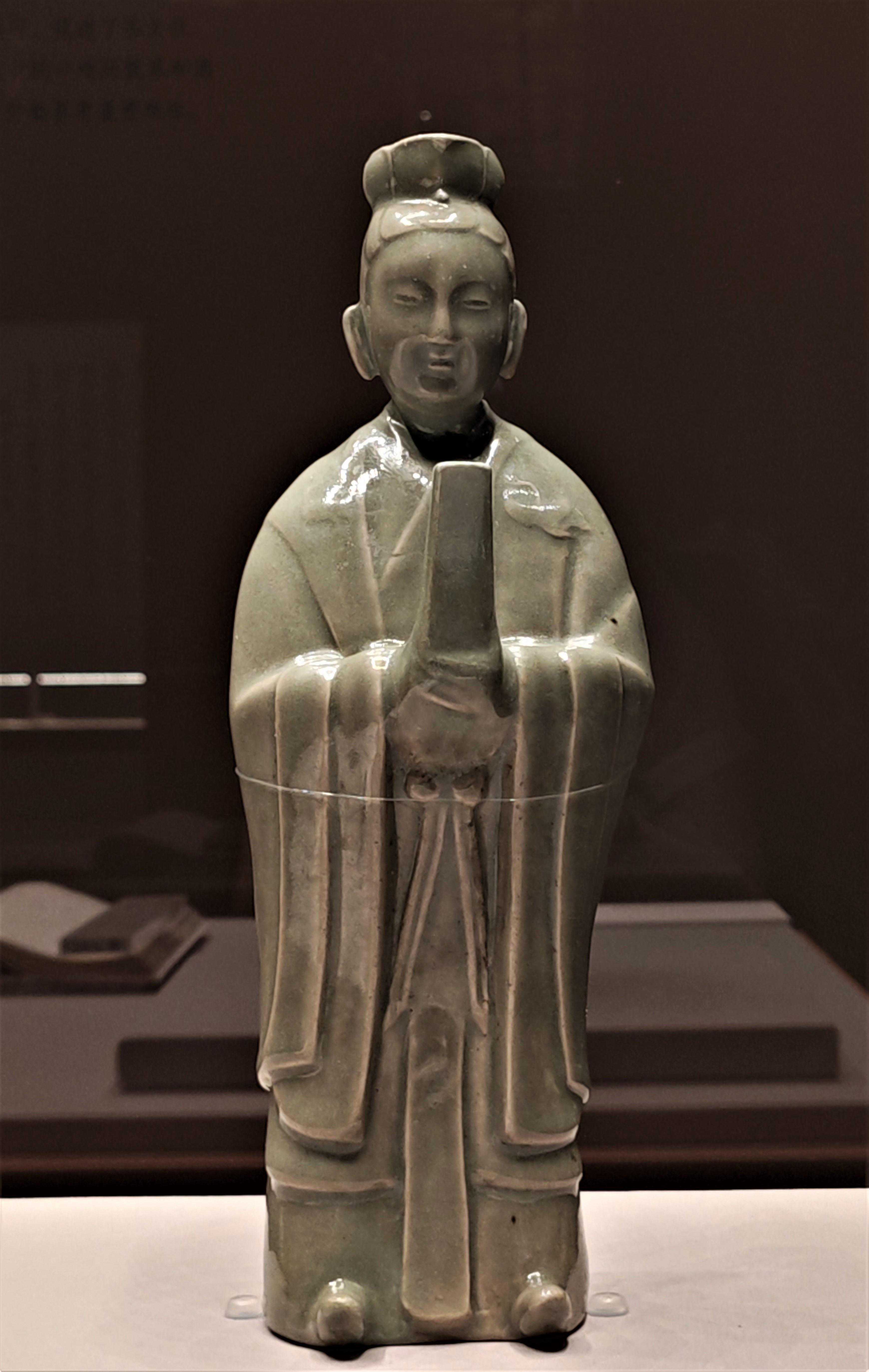 龙泉窑青釉陆羽像执壶(侧面)