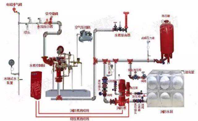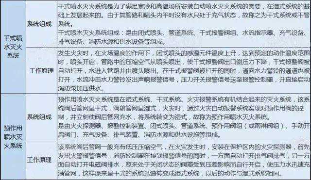 闭式自动喷水系统又包括:湿式系统、干式系统、预作用系统、循环系统;开式自动喷水系统也包括:雨淋灭火系统、水幕系统、水喷雾系统。