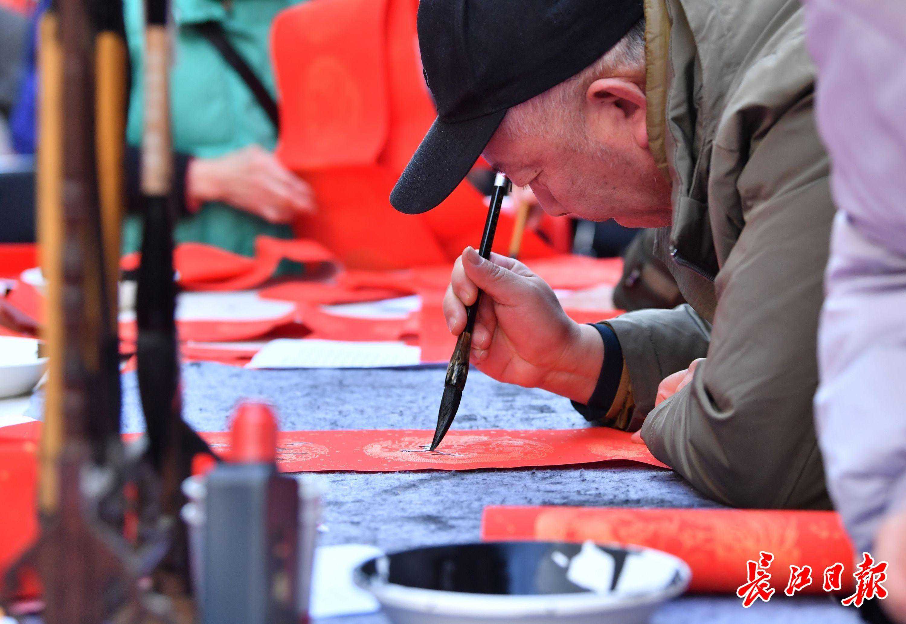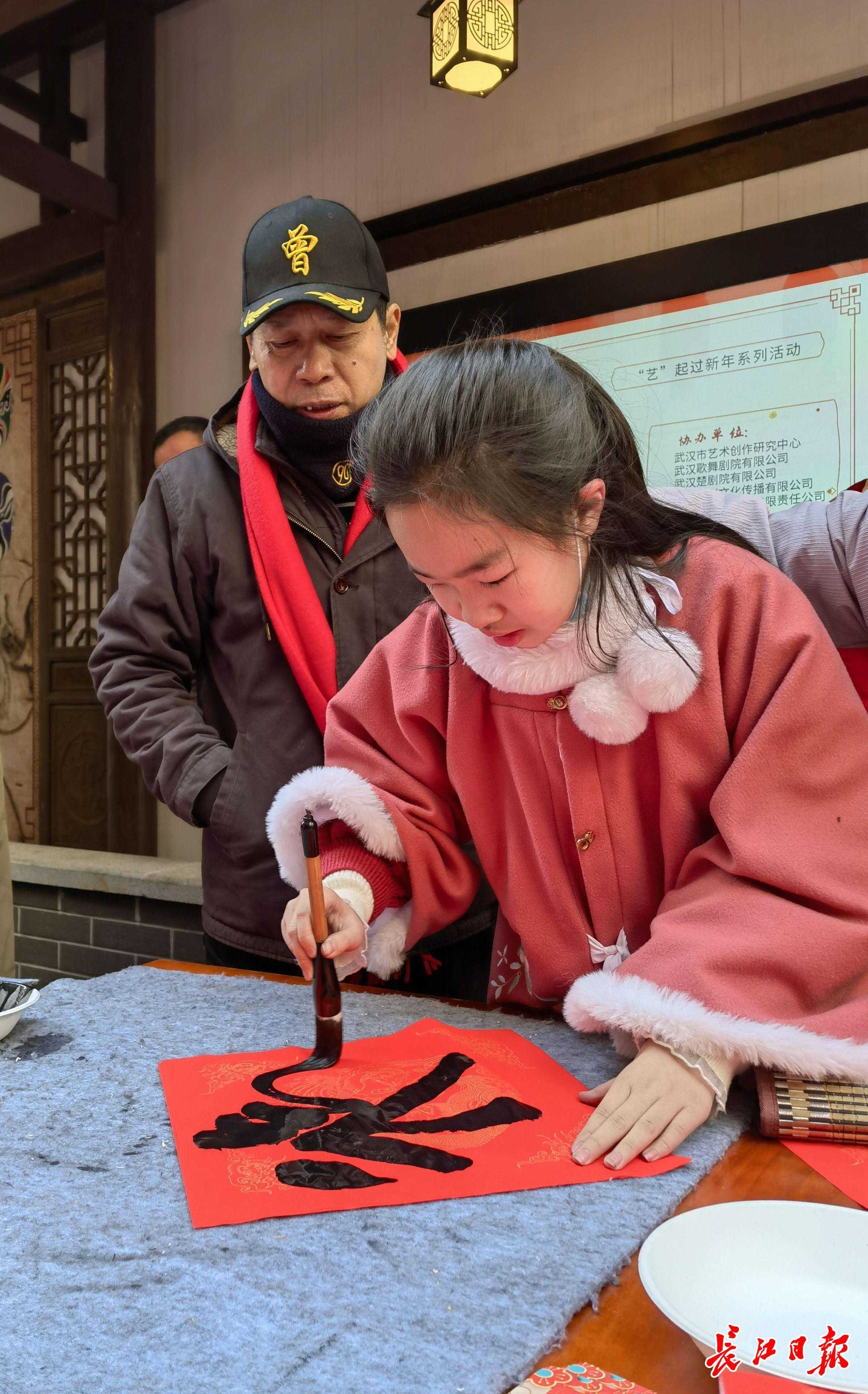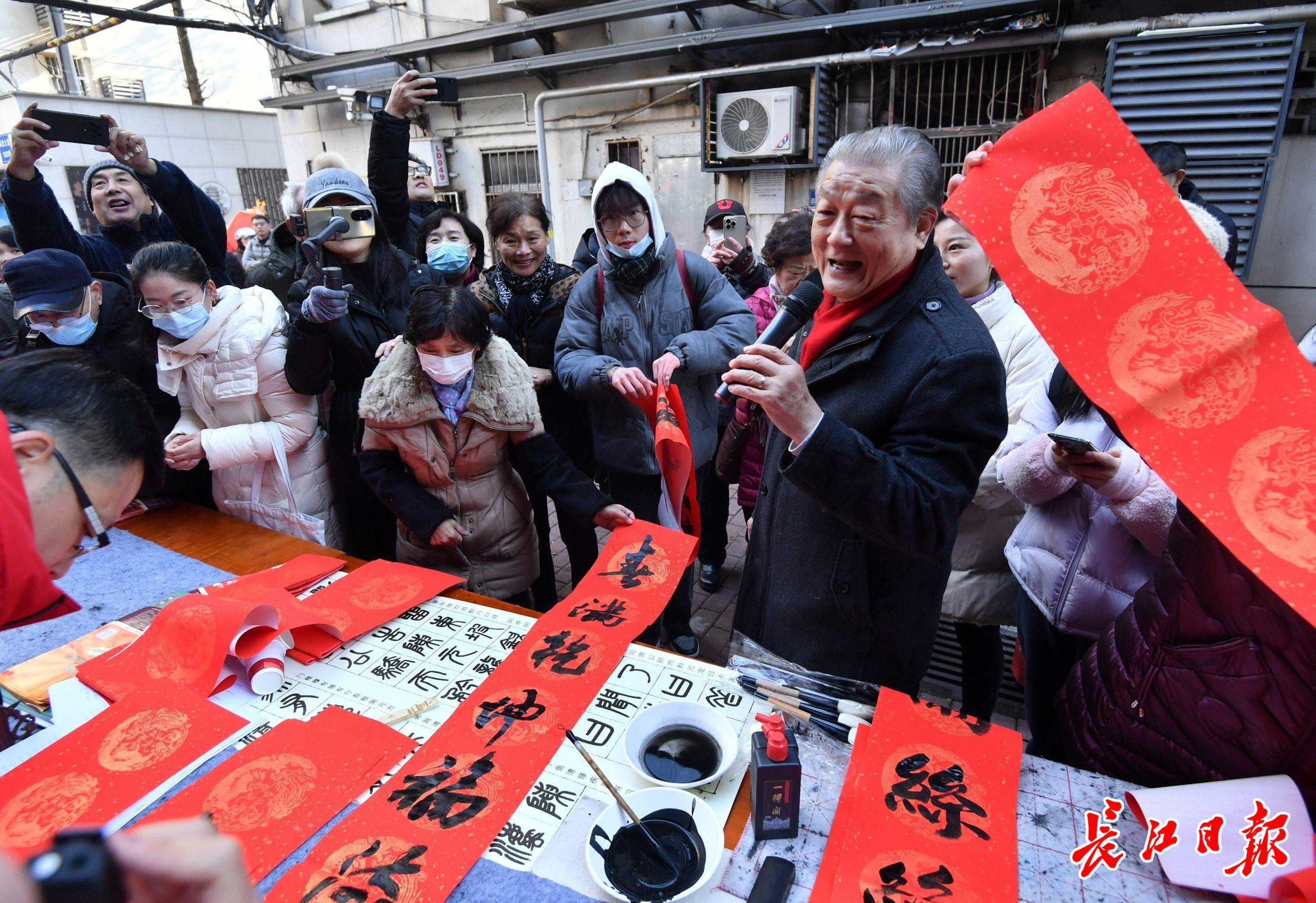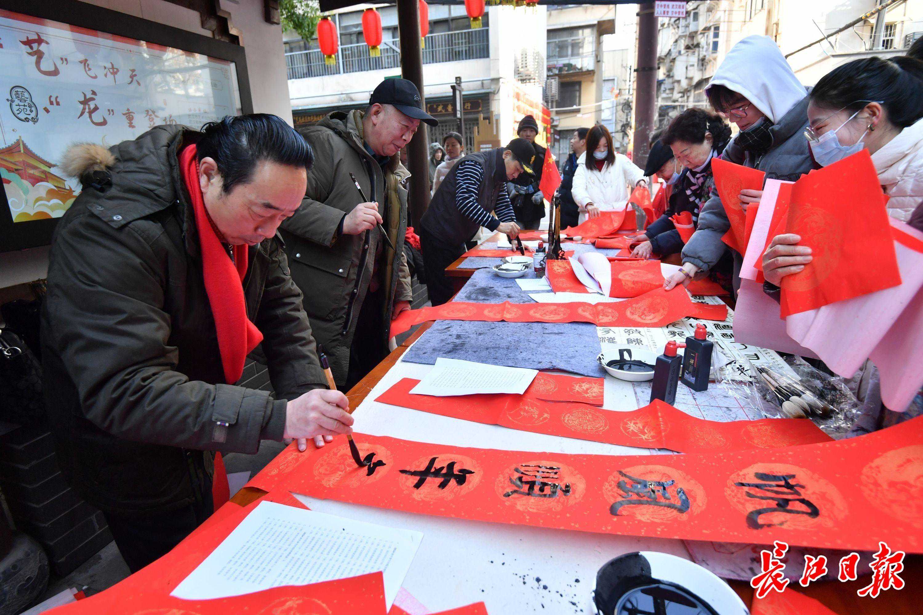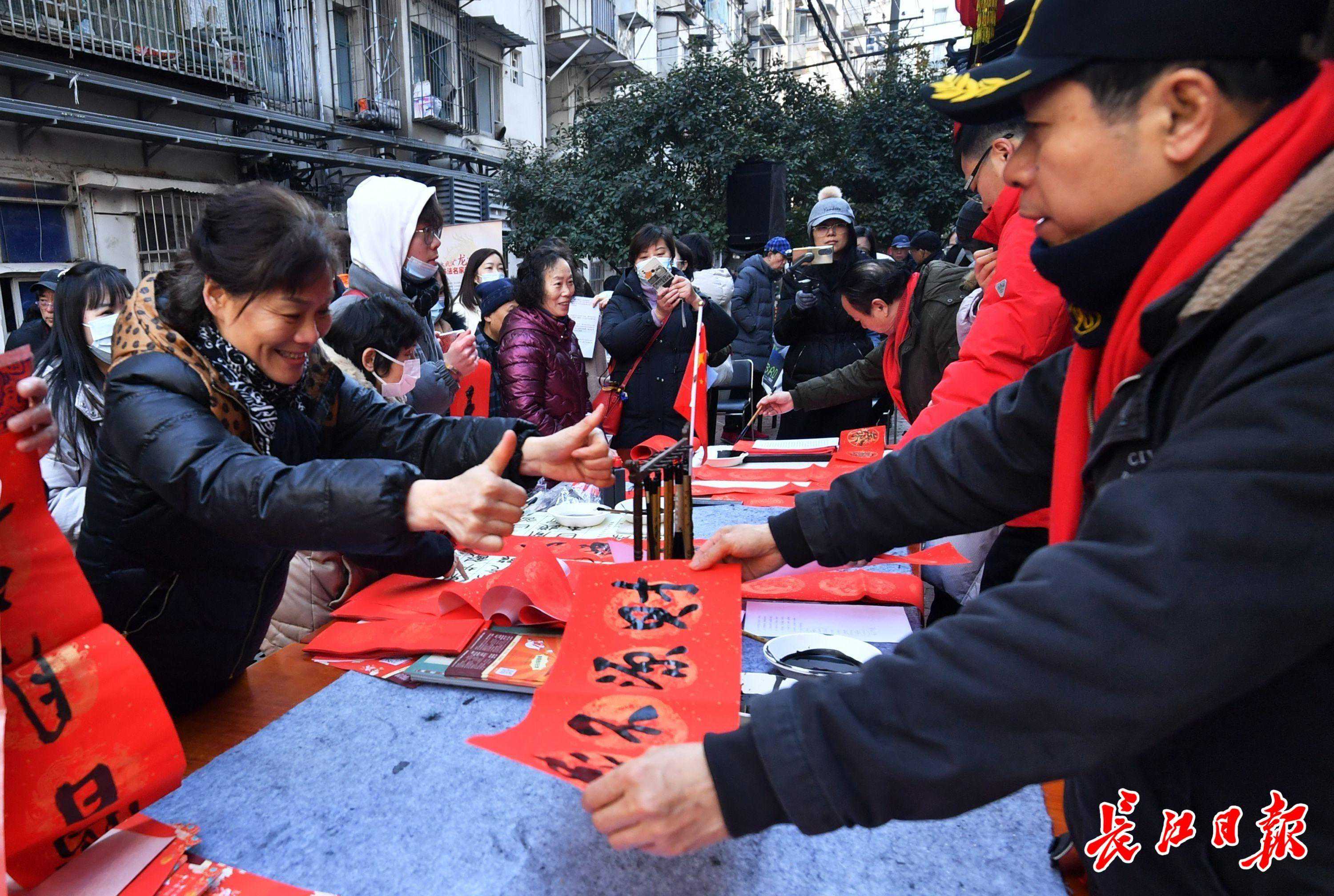 记者还看到,武汉书法家协会书法名家和艺苑社区书法爱好者一起写春联,以文会友迎新春。一旁的艺术爱好者正在表演现代京剧《沙家浜》片段,还有表演者拉起了二胡为现场助兴,一时间鼓声、锣声、欢快的音乐和居民的喝彩声交织在一起,浓浓的年味越来越近,共同期盼着新年的到来。