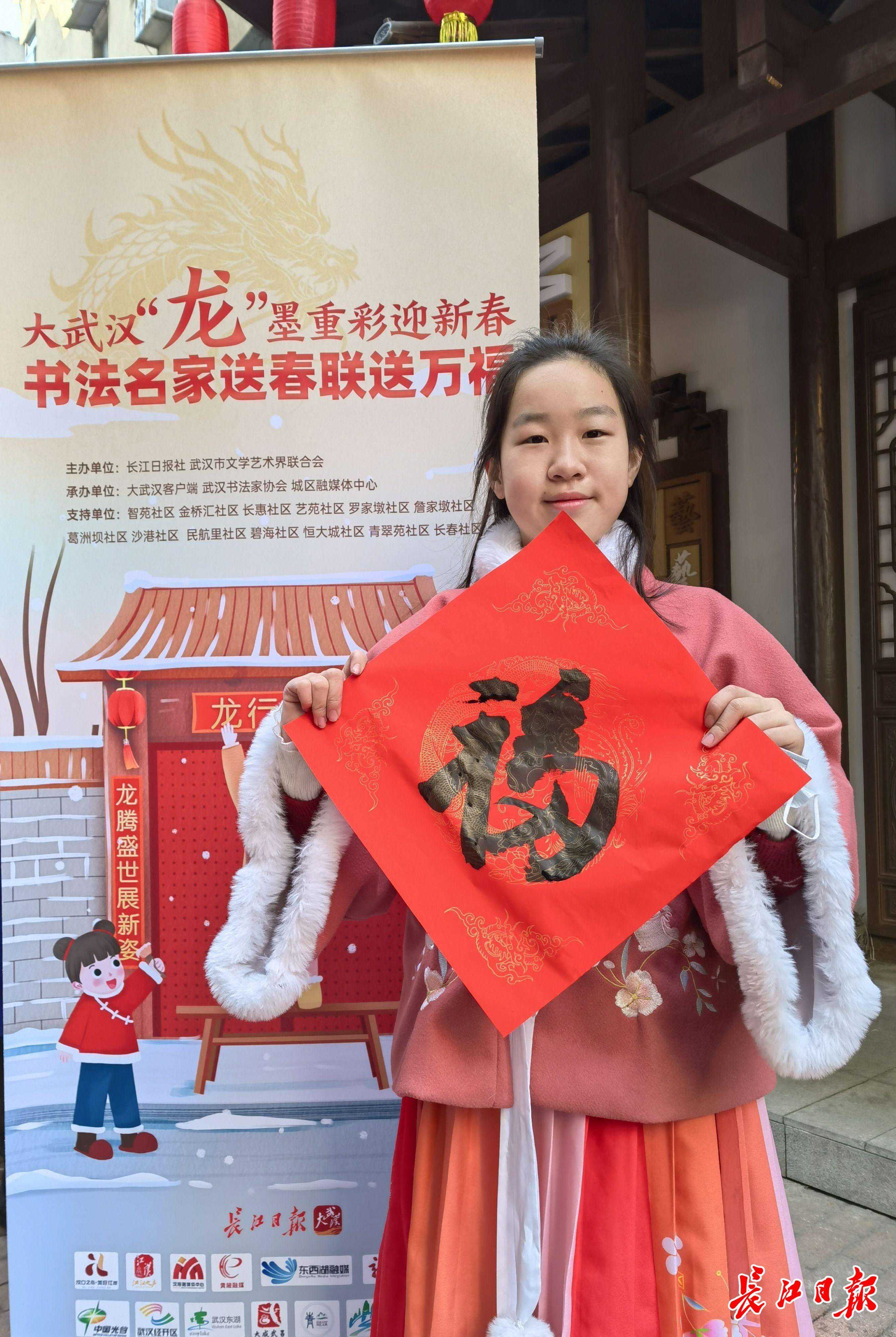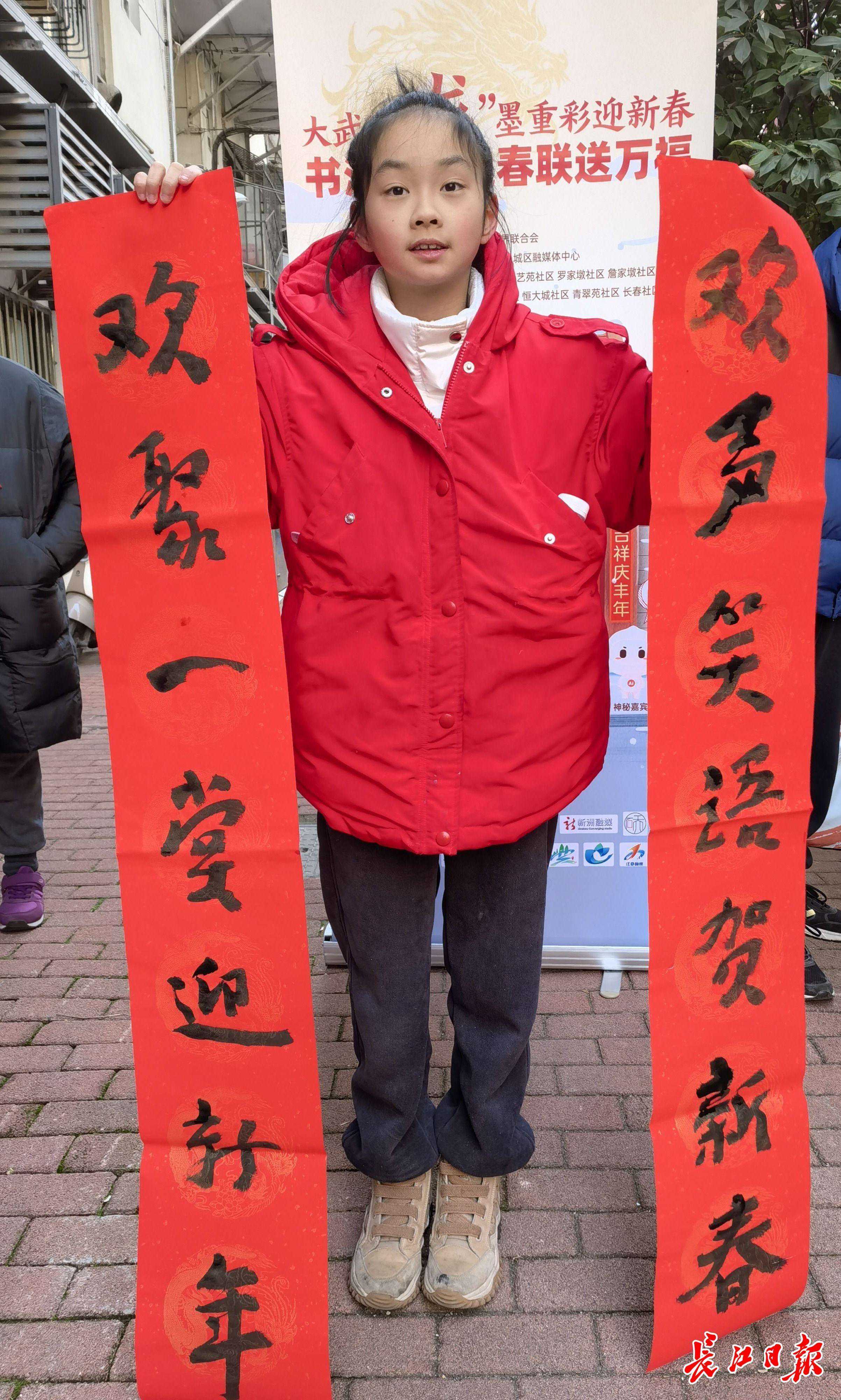 今年读4年级的詹奕欣也和家人一起来参加活动,“祝大家新年快乐!”她拿到春联后兴奋不已。