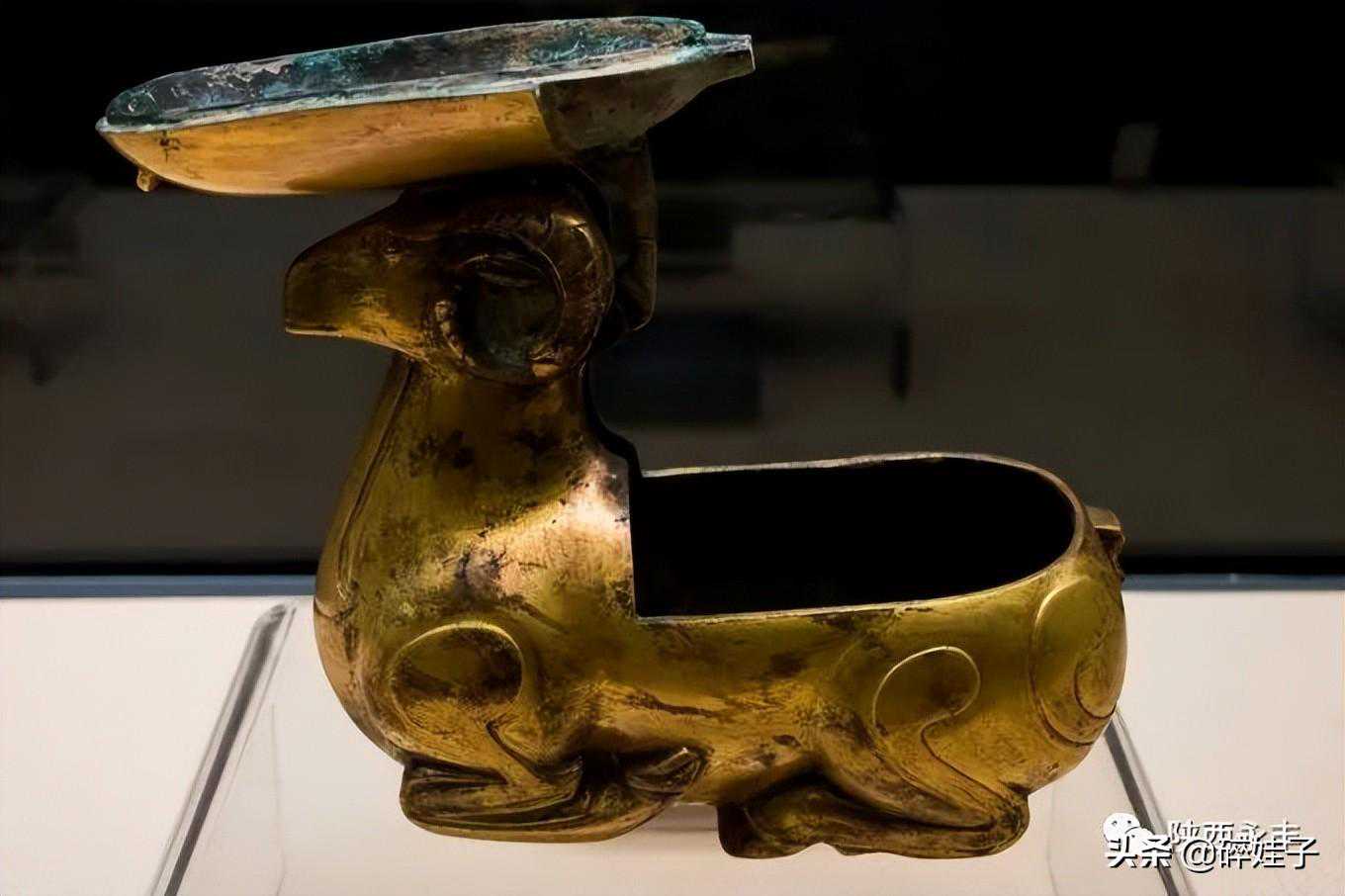 西安博物院镇馆之宝,2010年西安市长安区汉宣帝杜陵遗址出土。当时出土了3件玉杯,形制相同,杯身上的包金既有美化作用,也加固了杯身。玉杯的使用可能与当时祈求长生不老的思想有关,此类玉杯的功能是承接露水,用以服食玉屑以求成仙。